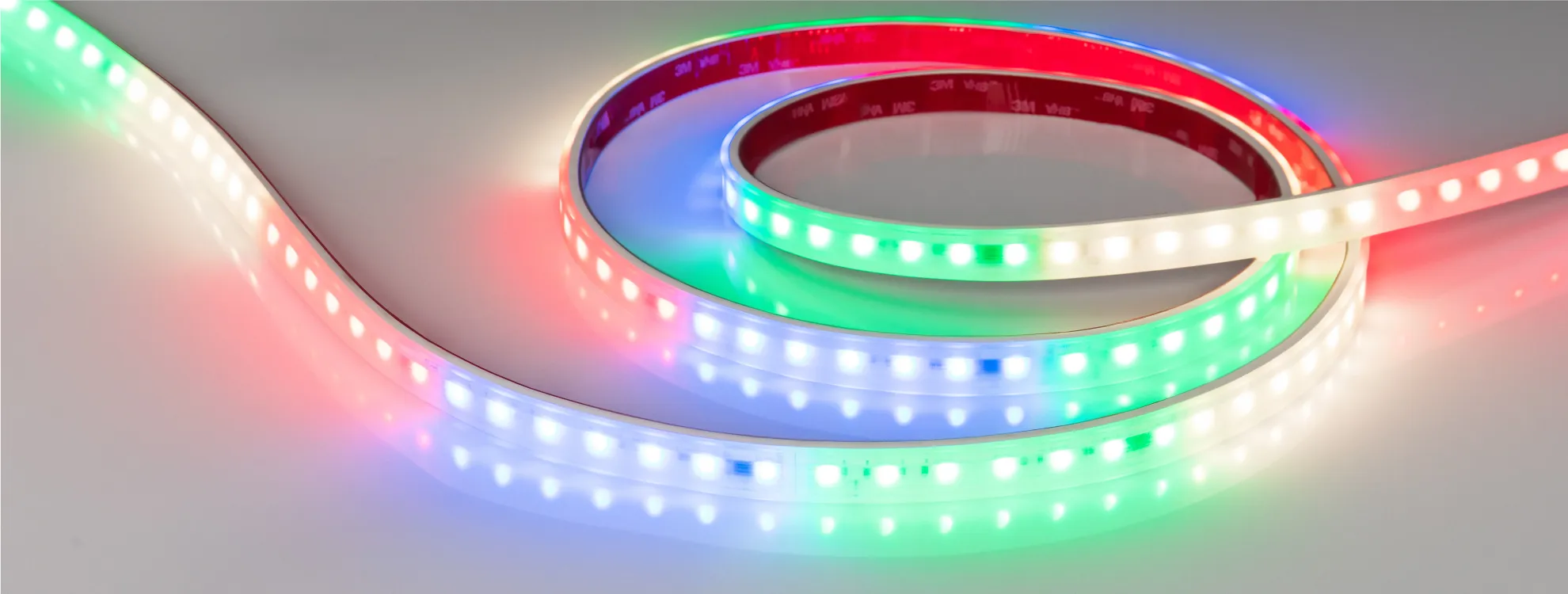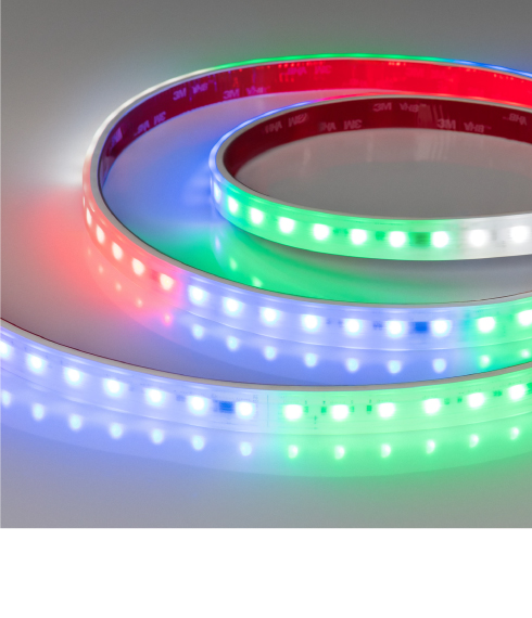 Разные цвета DMX B70 — лента с RGBW-свечением. В серии представлен стандартный ассортимент оттенков белого канала: 3000, 4000, 6000 К.