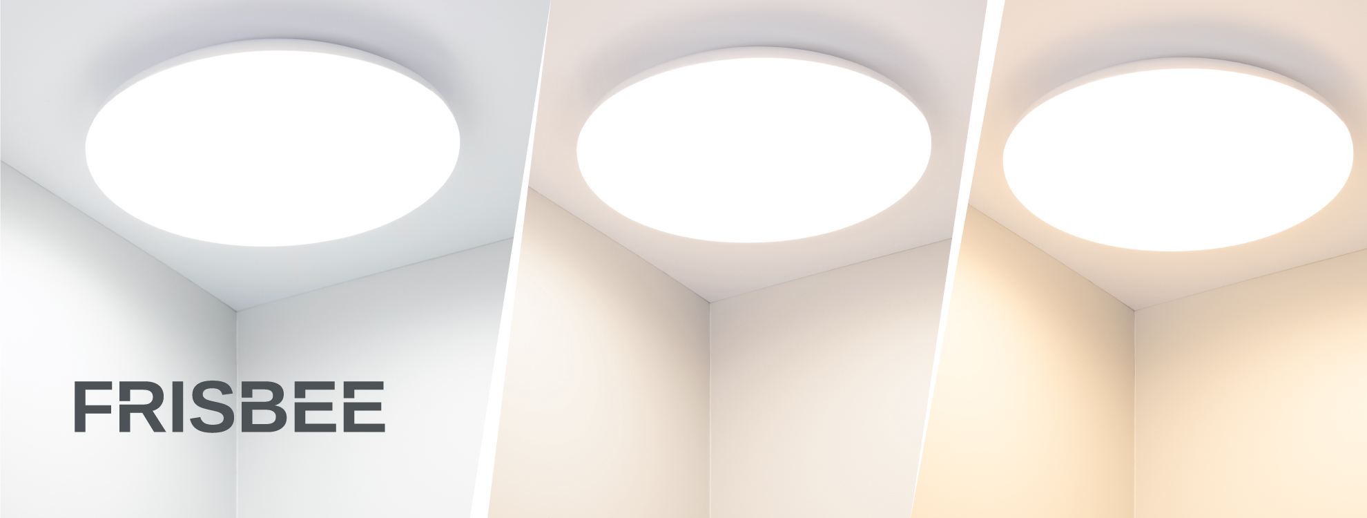 FRISBEE-DIM  Модель FRISBEE-DIM имеет функцию диммирования и переключения цветовой температуры в диапазоне 3000/4000/5000 К. Управление можно осуществлять совместимыми TRIAC-диммерами.