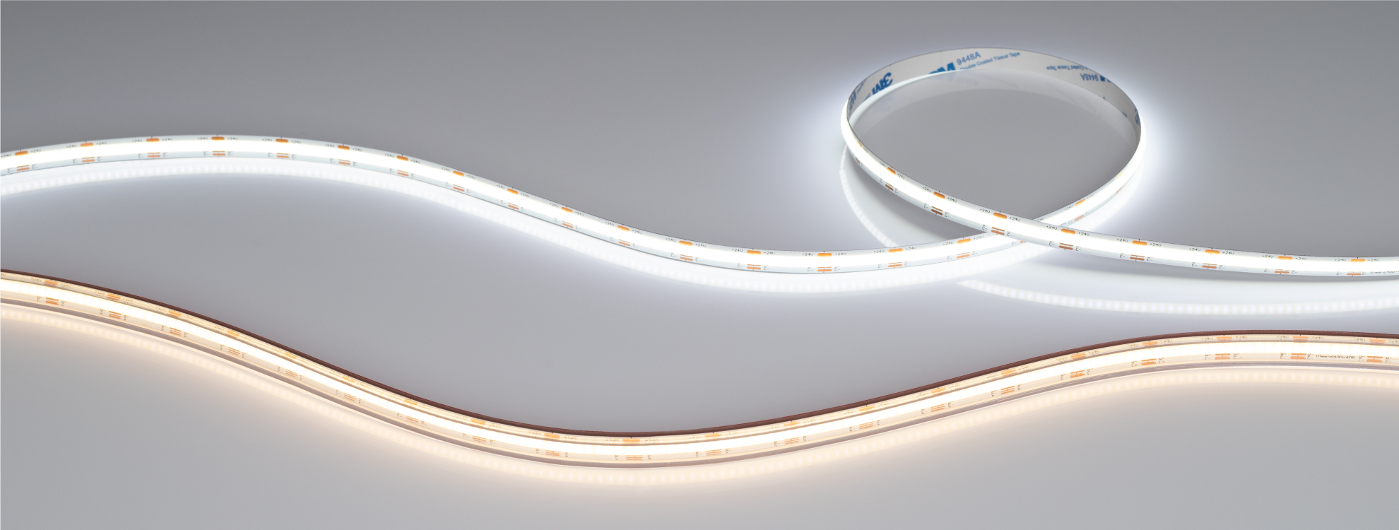 Равномерное свечение За счет заливки люминофором по всей длине ленты образуется равномерное свечение без видимых точек светодиодов даже без применения рассеивающих экранов.