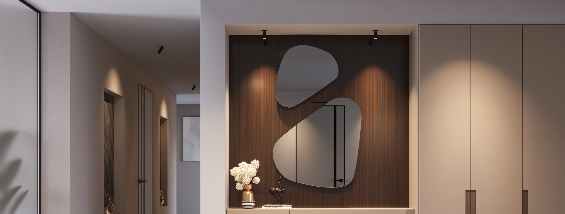 Корпус Накладной поворотно-откидной, встраиваемый поворотно-откидной, безрамочный с возможностью встройки под шпаклевку и телескопическим выдвижением светового модуля. Два цвета: черный или белый. Два цвета свечения: теплый (3000 K) или дневной белый (4000 K).