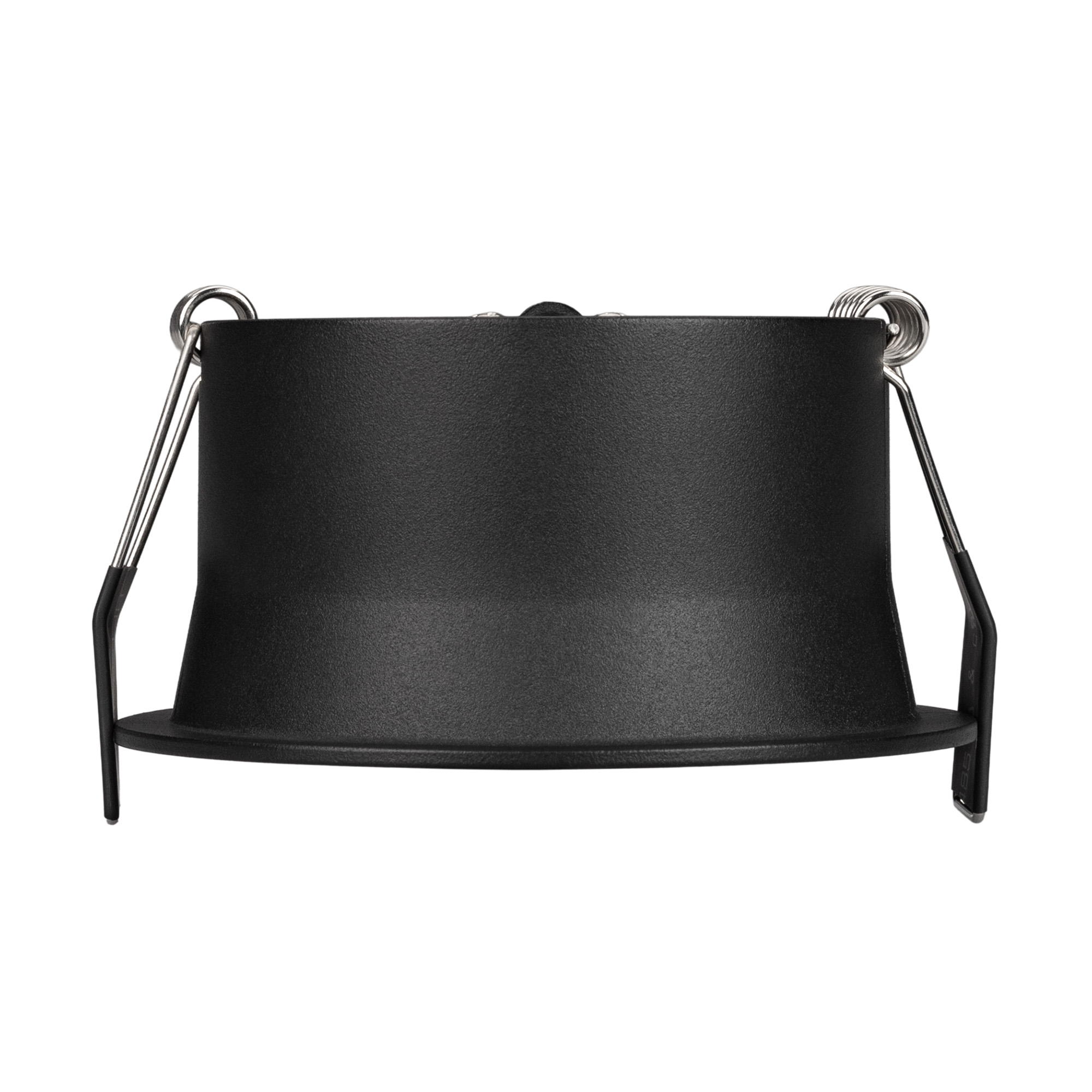 Встраиваемый круглый светильник c высоким индексом цветопередачи CRI>90 обеспечивает качественное освещение с точной передачей цветовых оттенков. Алюминиевый корпус черного цвета с утопленным светодиодным модулем является интересным дизайнерским решением, создавая эффект света из ниоткуда, делая освещение очень комфортным для глаз. Особая конфигурация корпуса позволяет эффективно отводить тепло и продлевает срок службы светодиодов. Светильник с широким углом рассеивания 85 градусов и светоотдачей 56 лм/Вт создает равномерное свечение без мерцаний. Легко устанавливается с помощью пружин в монтажное отверстие. Драйвер поставляется в комплекте и позволяет быстро подключать светильник напрямую к сети переменного тока 230 В. Диммирование возможно при замене штатного драйвера. Предназначен для основного освещения в жилых, коммерческих, торговых помещениях, где отсутствует контакт с водой.
