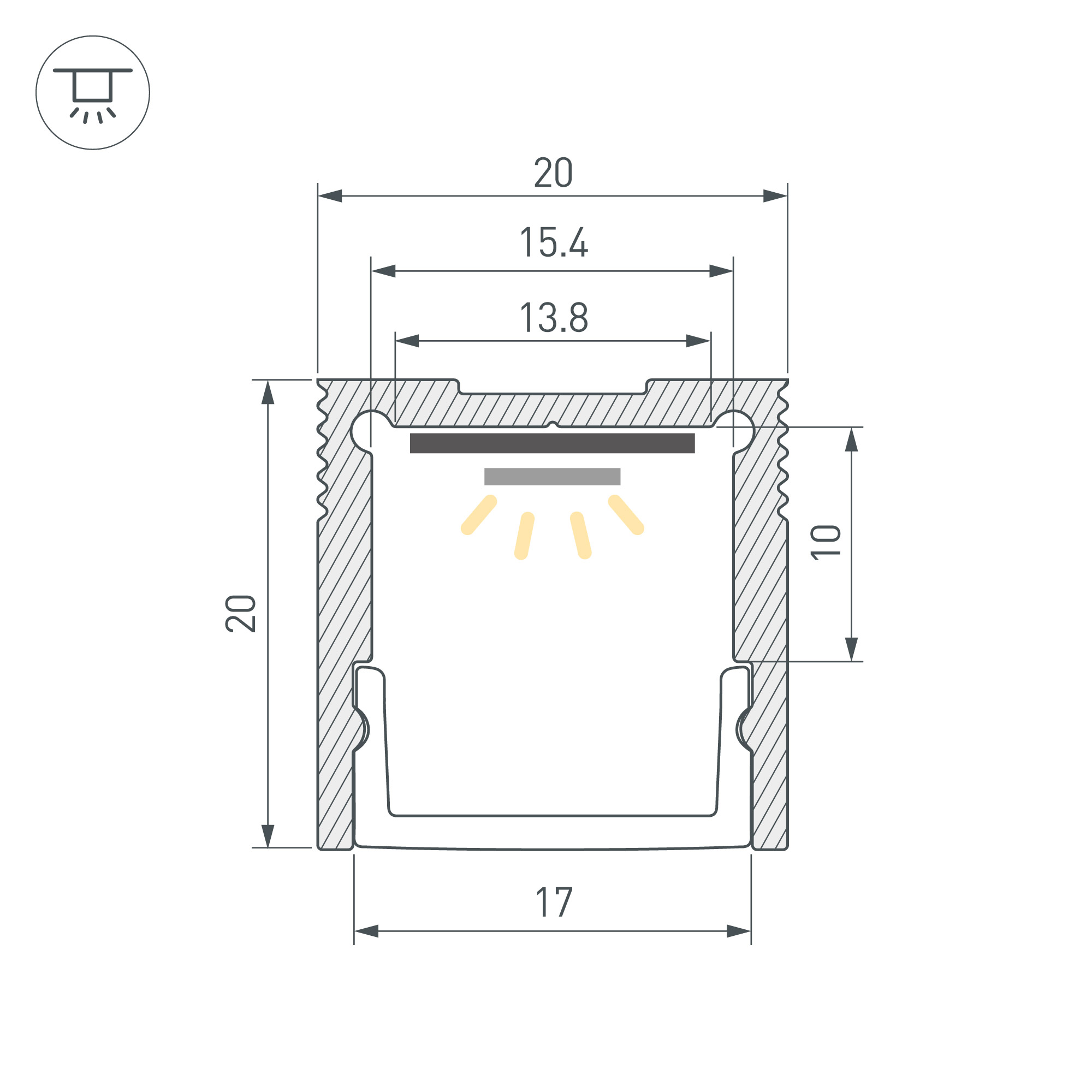Комплект с экраном. Алюминиевый анодированный профиль для светодиодных лент и линеек. Габаритные размеры (L×W×H): 2000x20x20 мм. Ширина площадки для ленты 15 мм. Упакован в картонный тубус диаметром 27 мм. Цена за комплект: профиль - 2 м, экран - 2 м, глухая заглушка - 2 шт., держатель - 4 шт.