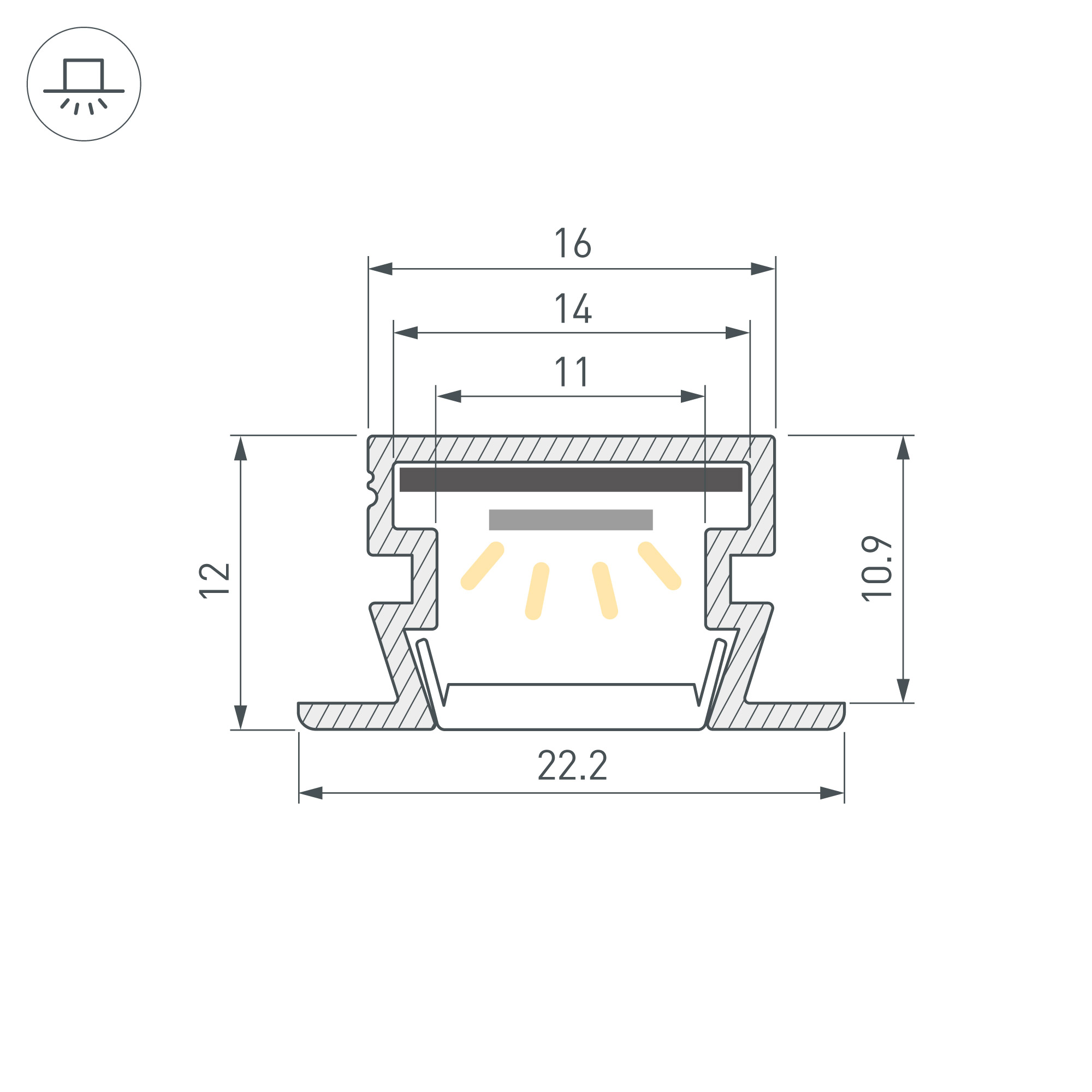 Встраиваемый профиль с накладным фланцем из анодированного алюминия для контурной подсветки. Габаритные размеры профиля составляют 3000 мм в длину, 22,2 мм в ширину и 12 мм в высоту. Площадка для установки светодиодных лент позволяет использовать ленту шириной до 14 мм и мощностью до 16,4 Вт/м. Это обеспечивает гибкость в выборе светодиодных лент и создает потрясающие световые решения. Экраны, заглушки и другие аксессуары не включены в комплект и приобретаются отдельно. Цена указана за 1 метр профиля. Отличное решение для создания современных световых проектов.