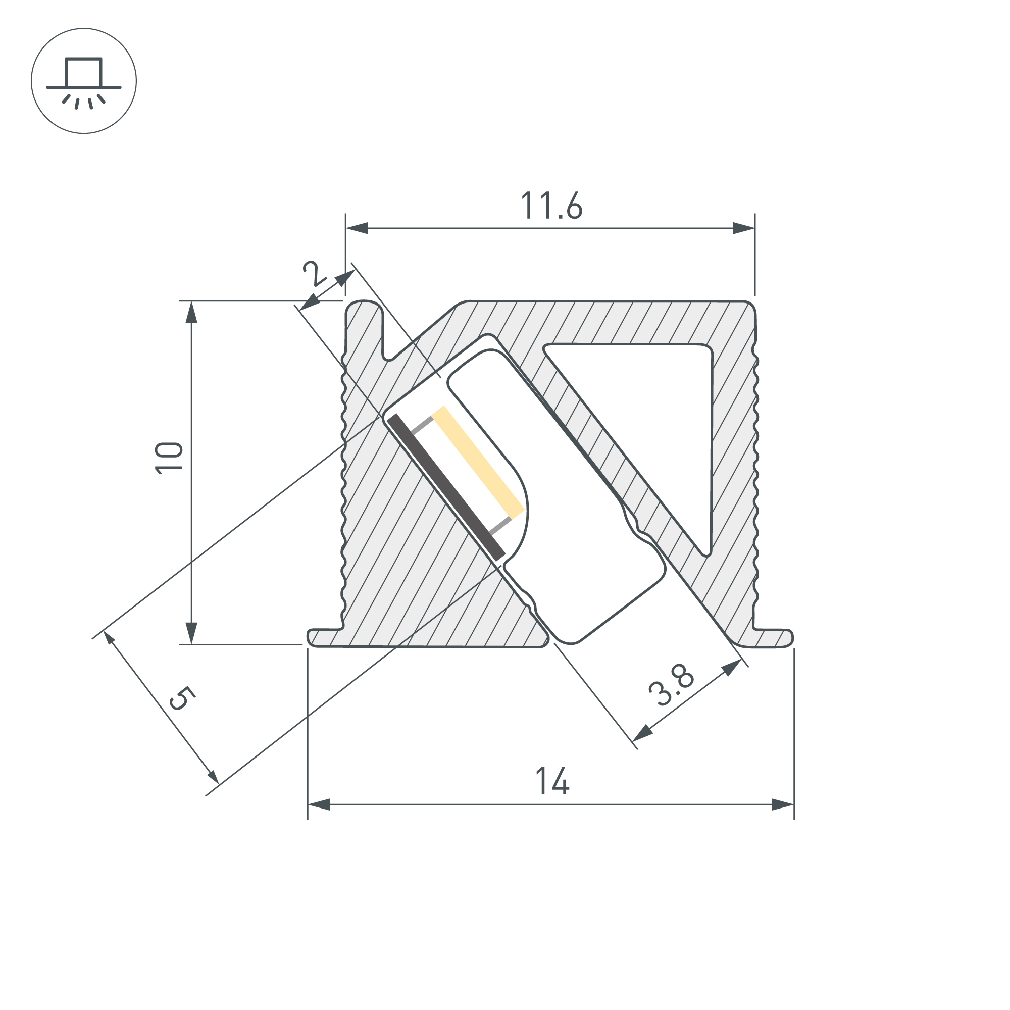 Встраиваемый профиль с накладным фланцем черного цвета  из анодированного алюминия для подсветки мебели, пазов, ниш и других элементов интерьера. Габаритные размеры профиля составляют 2000 мм в длину, 14 мм в ширину и 10 мм в высоту. Площадка для установки светодиодных лент позволяет использовать ленту шириной до 5 мм и мощностью до 15,14 Вт/м. Это обеспечивает гибкость в выборе светодиодных лент и создает потрясающие световые решения.