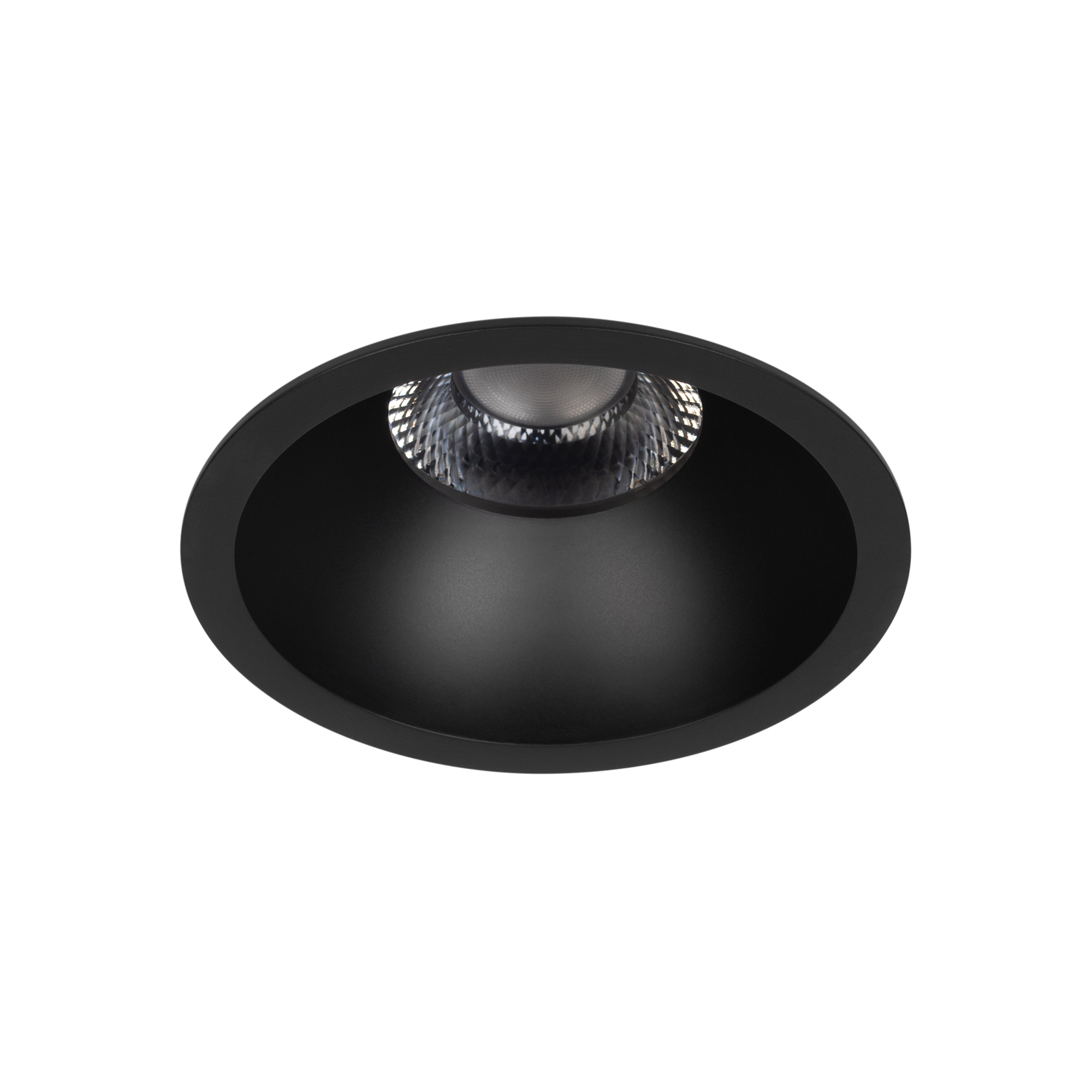 Встраиваемый светильник даунлайт. Мощность 15 Вт, св. поток 1260 лм, 84 лм/Вт, тёплый 3000 K, CRI>90, угол 36°, напряжение питания 230 В. Чёрный круглый корпус из алюминия, степень защиты IP20. Размер: диаметр 106 мм, высота 63 мм. Монтаж встраиваемый, установочное отверстие: диаметр 95 мм. UGR<14. Драйвер 27-40 В, 350 мА, пульсация <2%.