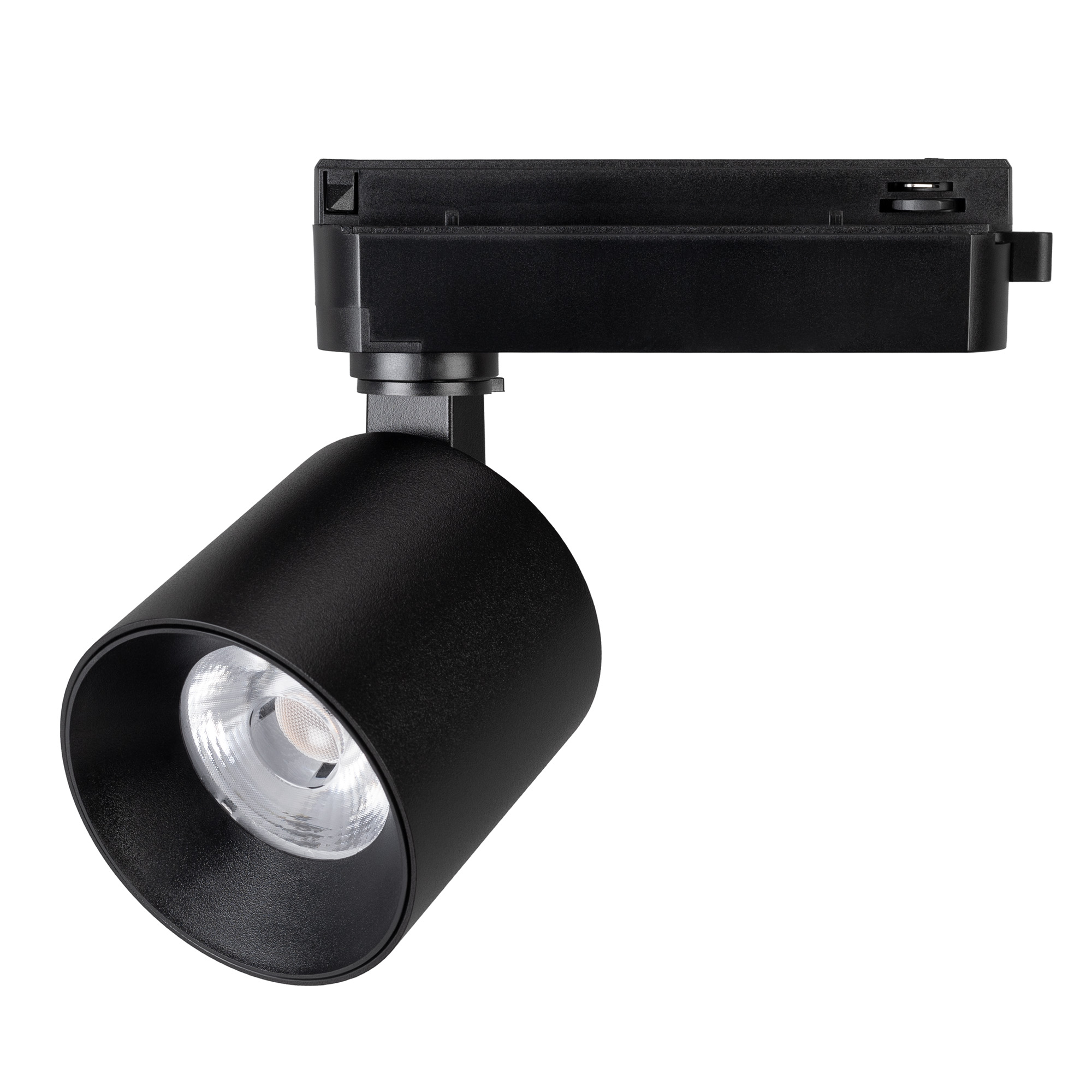 Светильник для однофазных треков, 16 Вт. Цвет свечения ДНЕВНОЙ 4000K, световой поток 1550 лм, угол 50°, CRI>90. Корпус круглый, металл, цвет черный, IP20. Размеры Ø74x69,6 мм. Монтаж на трек 1-фазный. Входное напряжение AC220-240V, мощность 20 Вт. Драйвер встроенный (25-40V, 500 mA).Пульсация <1%.