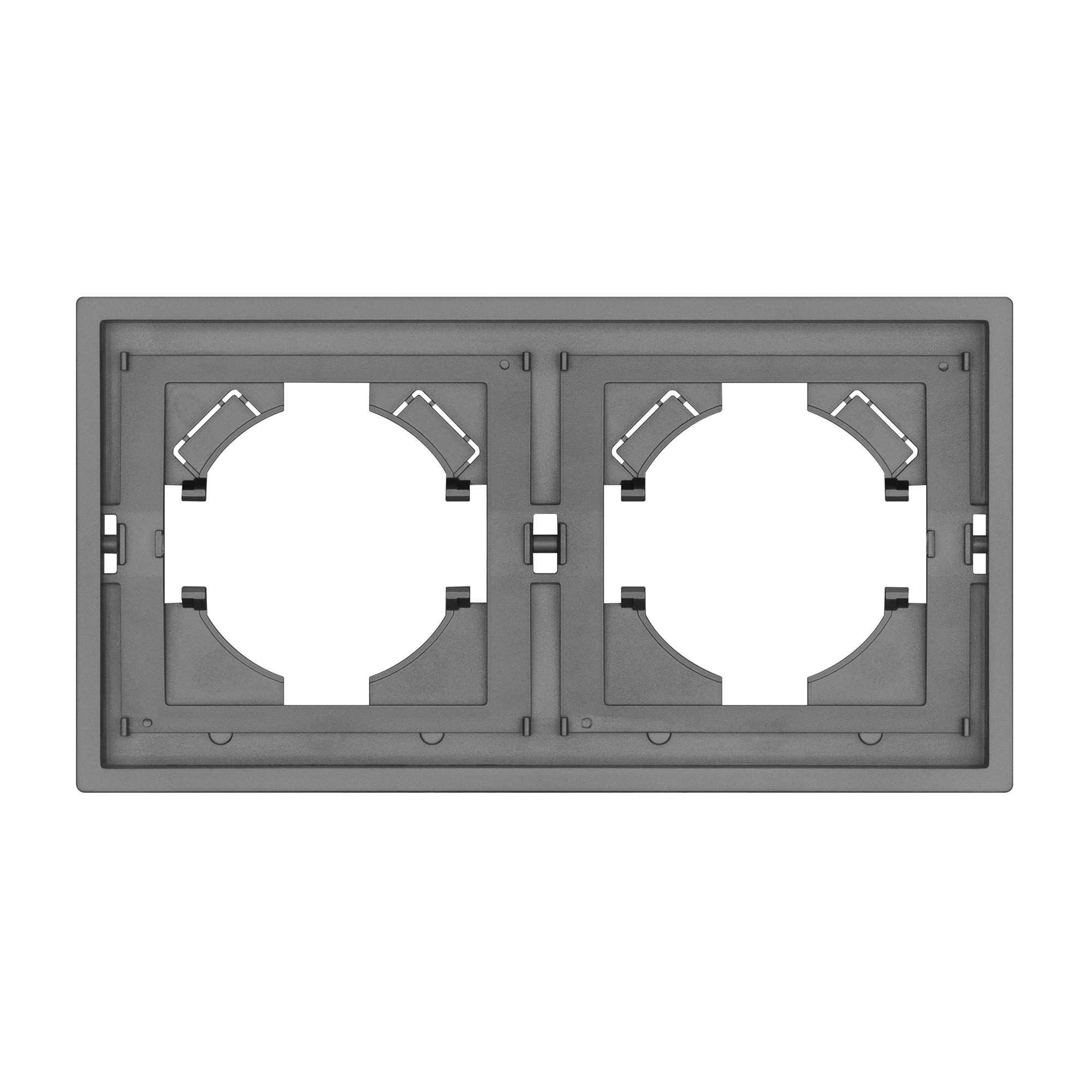 Рамка пластиковая на 2 поста, под встраиваемый механизм. Цвет - графитовый. Среднего уровня герметичности IP20. Ориентация монтажа горизонтальная. Габаритные размеры: длина 150 мм, ширина 80 мм, высота 9 мм. Гарантийный срок 12 мес.