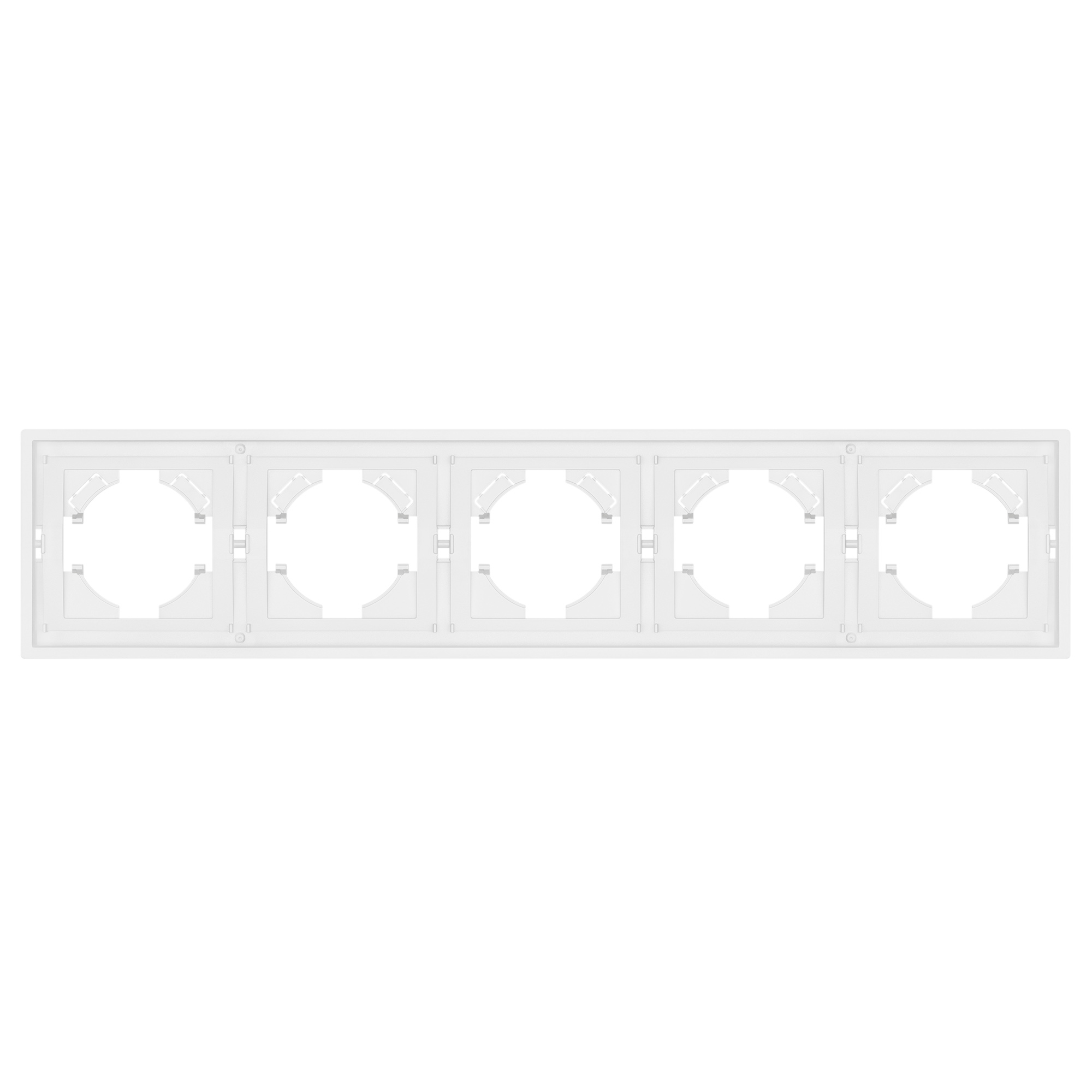 Рамка пластиковая на 5 постов, под встраиваемый механизм. Цвет - белый. Среднего уровня герметичности IP20. Ориентация монтажа горизонтальная. Габаритные размеры: длина 364 мм, ширина 80 мм, высота 9 мм. Гарантийный срок 12 мес.