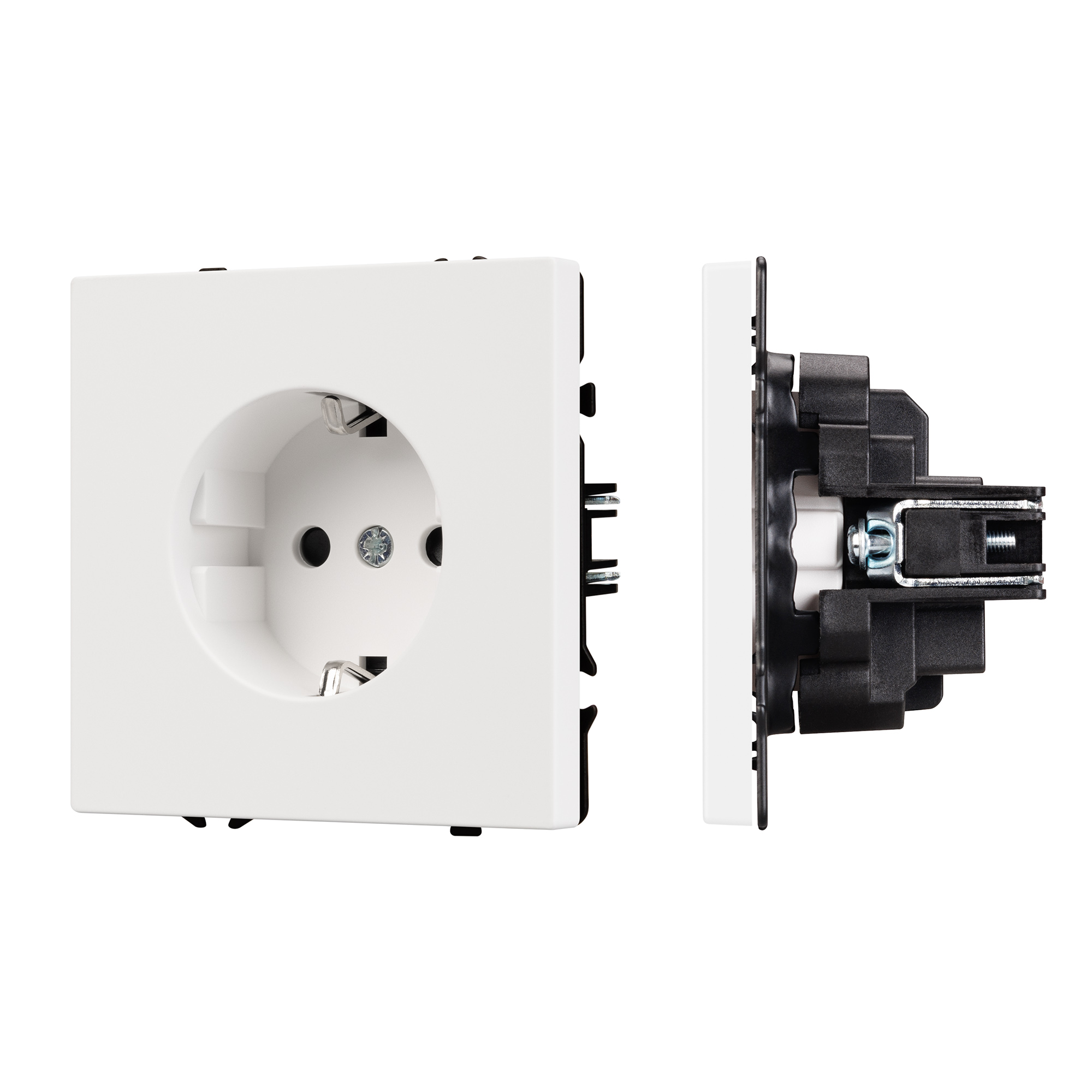 Механизм розетки с заземлением совместим с рамками серии NOBE, создает утонченный минималистичный вид. Скрытый тип монтажа позволяет гармонично встроить в интерьер любого современного дизайн-проекта. Видимая часть механизма выполнена из высококачественного пластика белого цвета и имеет Soft-Touch покрытие, что придает изделию приятные тактильные ощущения и стильный внешний вид.