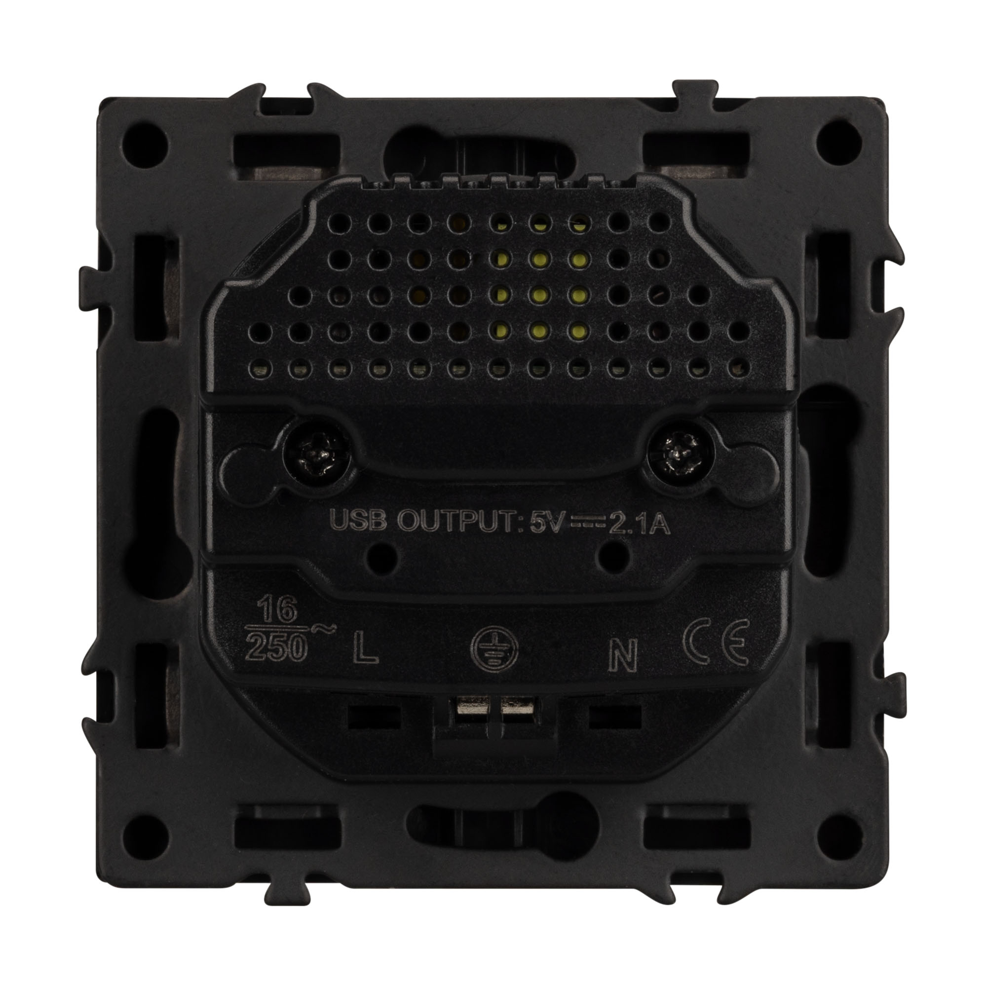 Механизм розетки с USB зарядкой, совместимый с рамками серии NOBE, создает утонченный минималистичный вид. Наличие двух USB Type A портов позволяет существенно сократить количество используемых розеточных постов под евровилку, сохраняя единую стилистику интерьера всего современного дизайн-проекта. Видимая часть механизма выполнена из высококачественного пластика серого цвета и имеет Soft-Touch покрытие, что придает изделию приятные тактильные ощущения и стильный внешний вид.