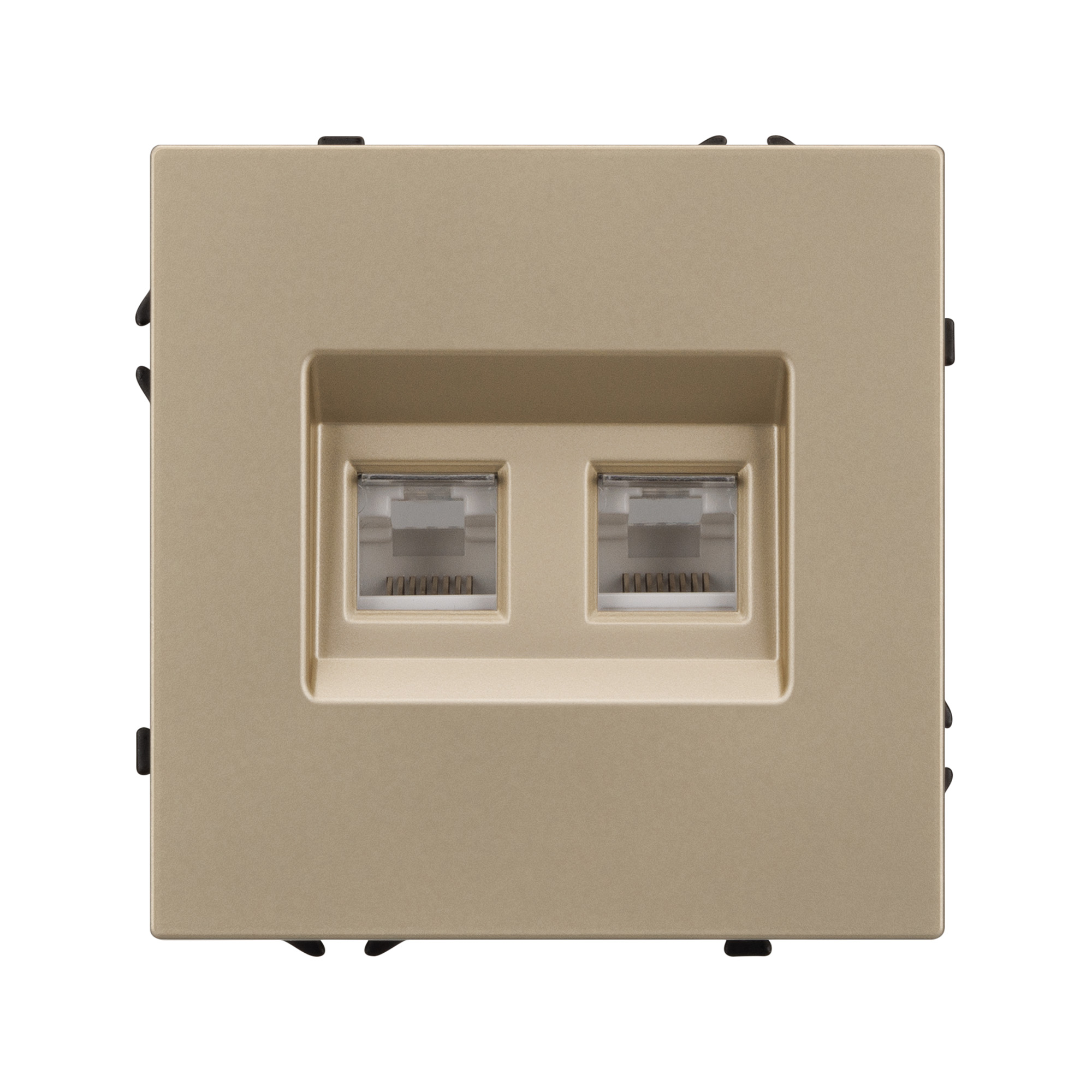 Механизм компьютерной розетки совместим с рамками серии NOBE, создает утонченный минималистичный вид. Скрытый тип монтажа позволяет гармонично встроить в интерьер любого современного дизайн-проекта. Видимая часть механизма выполнена из высококачественного пластика золотого цвета и имеет Soft-Touch покрытие, что придает изделию приятные тактильные ощущения и стильный внешний вид.