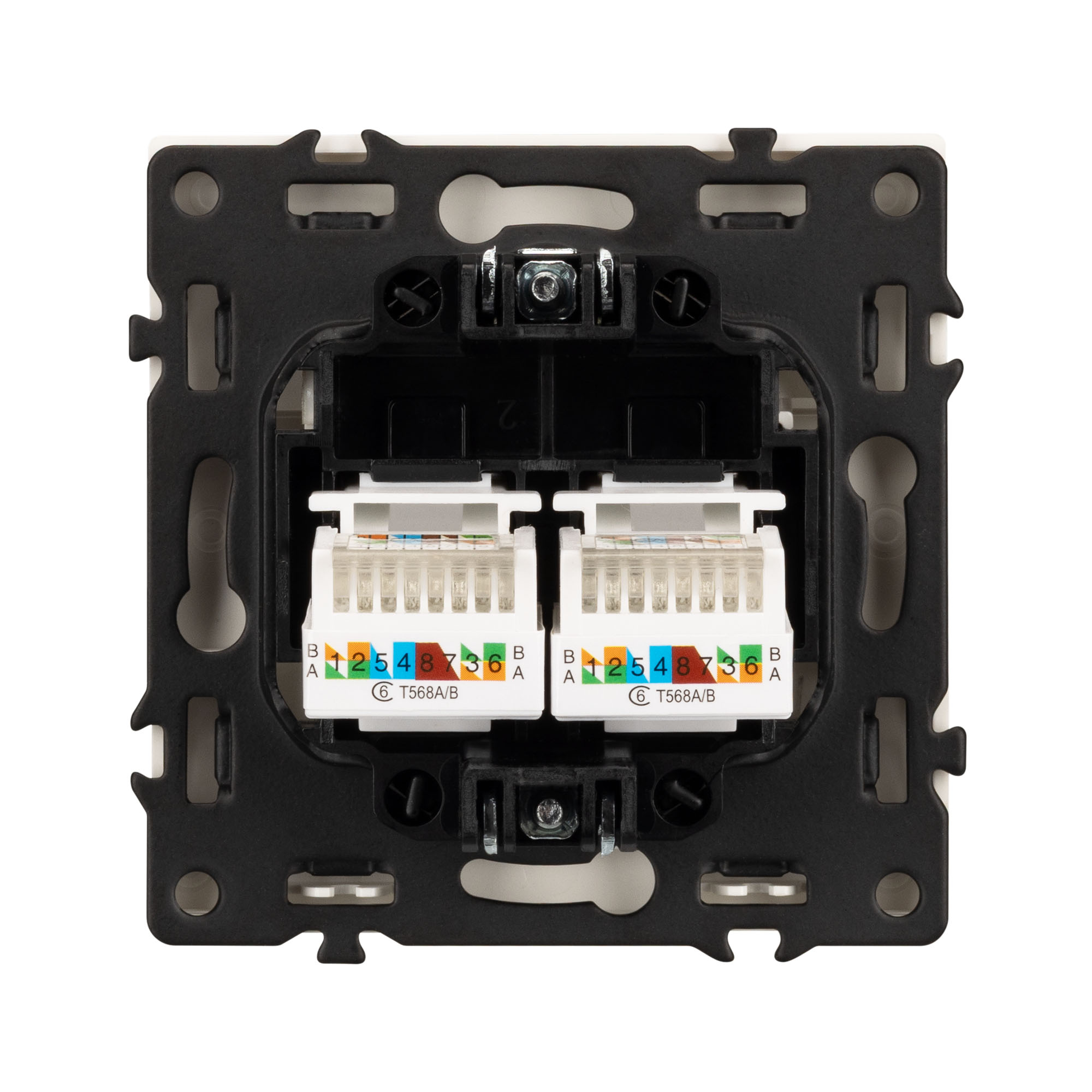 Выходной порт RJ-45 (Female) формата 8P8C соответствует категории 6 (Cat.6), что поддерживает высокоскоростные соединения до 10 Гбит/с на расстоянии до 55 метров. Самозакрывающаяся крышка защищает выходной порт от повреждения и загрязнения внешних контактов разъема. Контактная часть выполнена по технологии IPC (изоляционно–пробивающего контакта) с нанесением цветной маркировки схемы разводки на корпус, позволяя быстро и легко подсоединить механизм компьютерной розетки к большинству многожильных кабелей типа UTP (неэкранированные). А усиленные распорные лапки двойного захвата надежно фиксируют механизм в установочном подрозетнике круглого сечения диаметром 60мм.