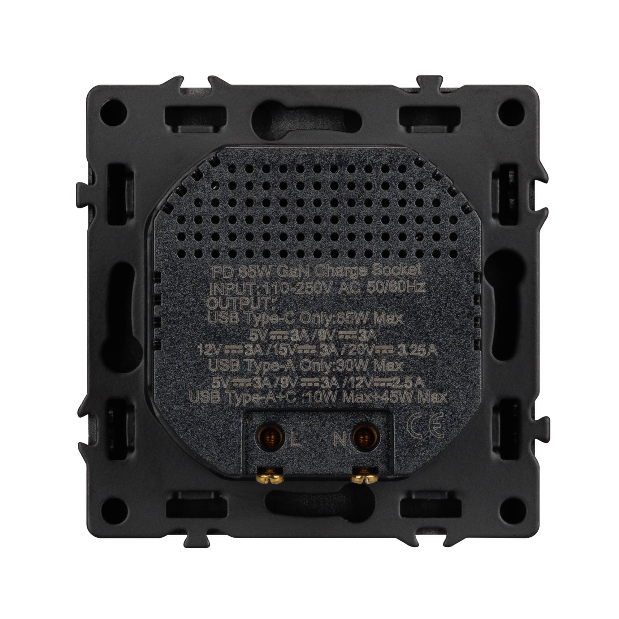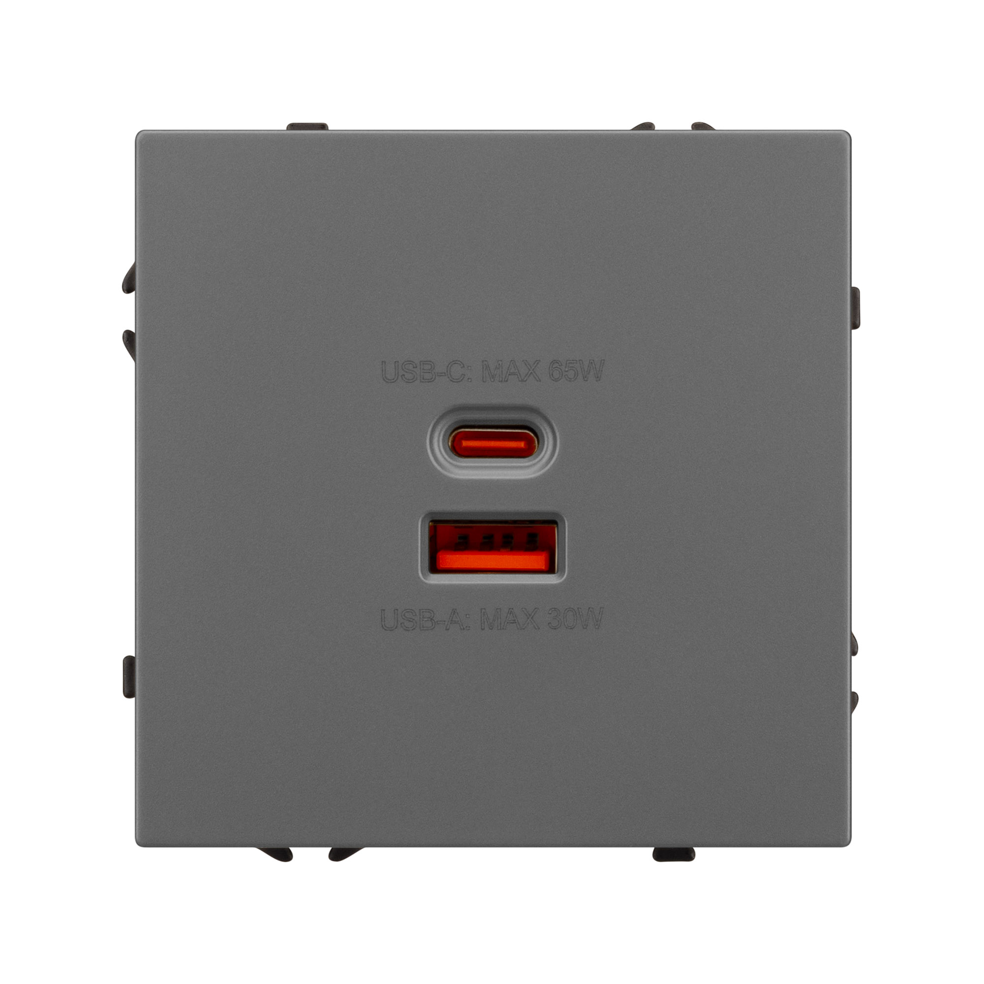 Механизм розетки с быстрой USB зарядкой, совместимый с рамками серии NOBE, создает утонченный минималистичный вид. Наличие USB Type A и Type C портов позволяет существенно сократить количество используемых розеточных постов под евровилку, сохраняя единую стилистику интерьера всего современного дизайн-проекта. Оба разъема поддерживают протокол быстрой зарядки Quick Charge QC 3.0, помимо этого для разъема Type C доступен протокол Power Delivery*.