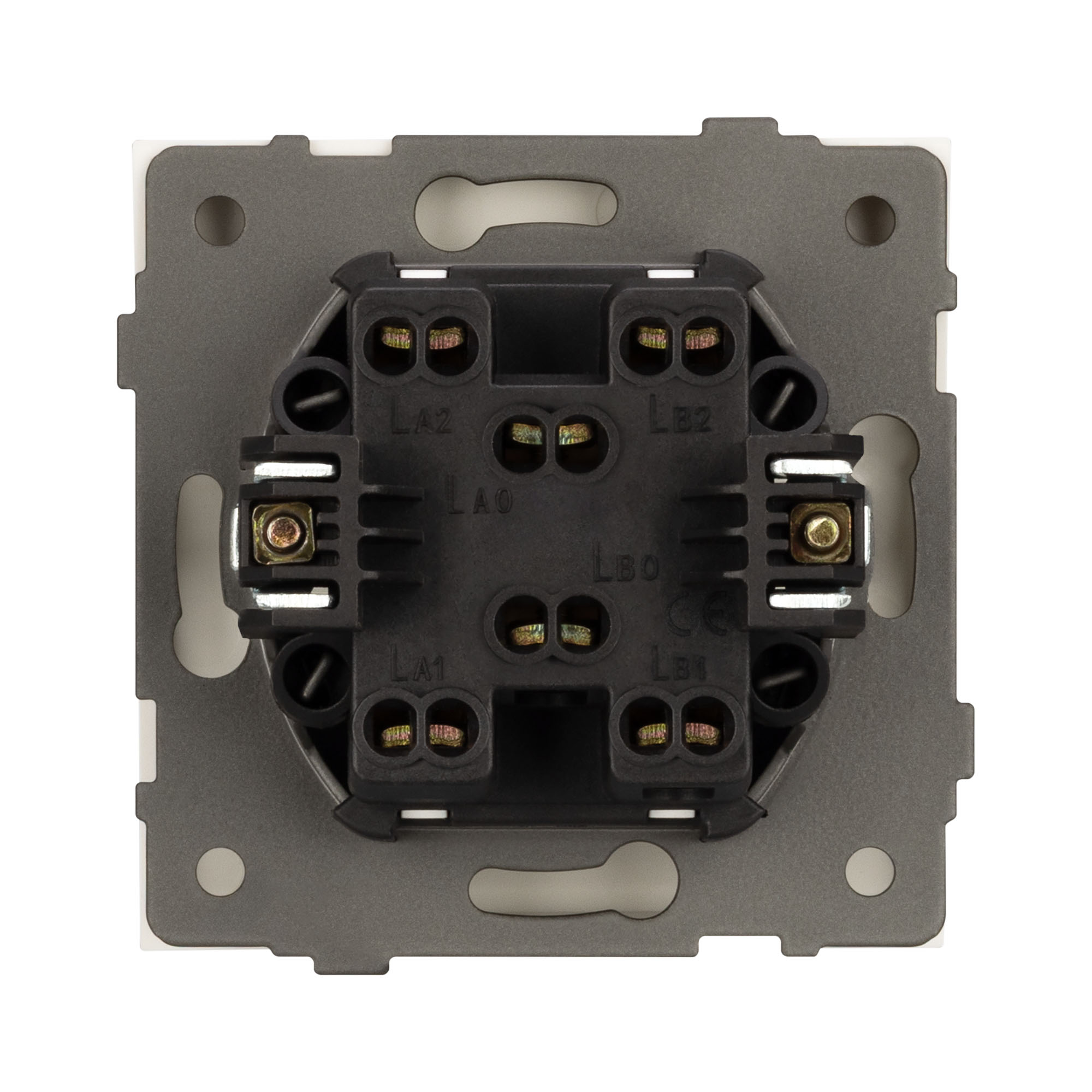Механизм выключателя света совместим с рамками серии TENDO, создает утонченный минималистичный вид. Скрытый тип монтажа позволяет гармонично встроить в интерьер любого современного дизайн-проекта. Видимая часть механизма выполнена из высококачественного пластика белого цвета и имеет Soft-Touch покрытие, что придает изделию приятные тактильные ощущения и стильный внешний вид. Контактная часть присоединяется при помощи винтовых зажимов, позволяя надежно подсоединить механизм выключателя к питающим элементам. А усиленные распорные лапки двойного захвата надежно фиксируют механизм в установочном подрозетнике круглого сечения диаметром 60мм. Суппорт окрашен порошковой краской и выполнен из металла толщиной 1,5мм, что обеспечивает безопасность и уверенность в установке. На каждой стороне суппорта размещены фиксирующие элементы, позволяющие комбинировать механизмы в системы до 5 шт как горизонтально, так и вертикально.