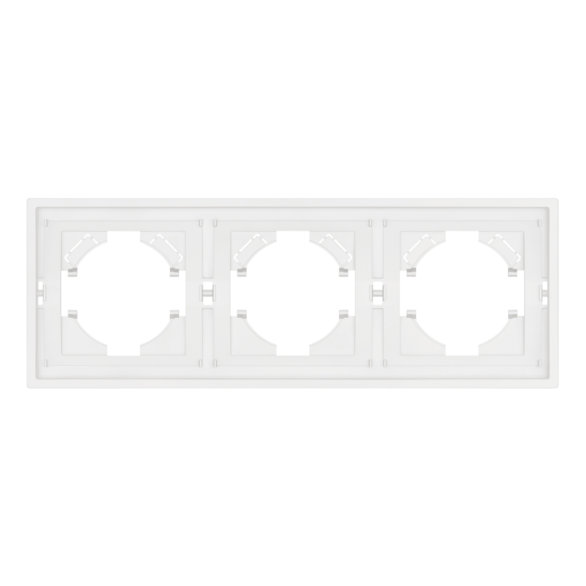Рамка пластиковая на 3 поста, под встраиваемый механизм. Цвет - матовый белый, с Soft-Touch покрытием. Среднего уровня герметичности IP20. Ориентация монтажа горизонтальная. Габаритные размеры: длина 221 мм, ширина 80 мм, высота 9 мм. Гарантийный срок 12 мес.