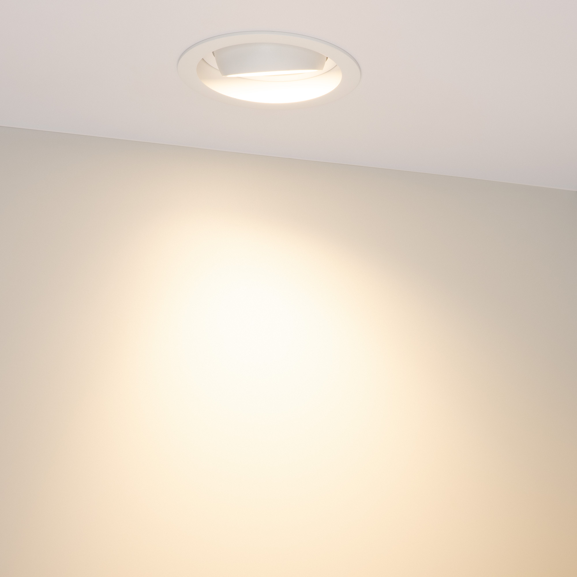Встраиваемый карданный поворотный светильник с высоким индексом цветопередачи CRI>92 предназначен для создания качественного освещения. За основу поворотного механизма светильника взят принцип кардана – подвижное соединение двух колец, вложенных одно в другое. Световой модуль вращается вокруг своей оси на 360 градусов и отклоняется от горизонта на 30 градусов, что позволяет с лёгкостью регулировать направление пучка света и его концентрацию на определенной зоне. Особая конфигурация корпуса из алюминия оригинально смотрится в интерьере и позволяет эффективно отводить тепло. Светильник с углом рассеивания 50 градусов отлично подходит как для локальной акцентной подсветки витрин, прилавков магазинов, бутиков и стендов выставочных залов, так и для общего освещения. Легко устанавливается с помощью пружин в монтажное отверстие потолка. В комплекте поставляется драйвер, что позволяет безопасно и быстро подключать светильник напрямую к сети переменного тока 230 В.