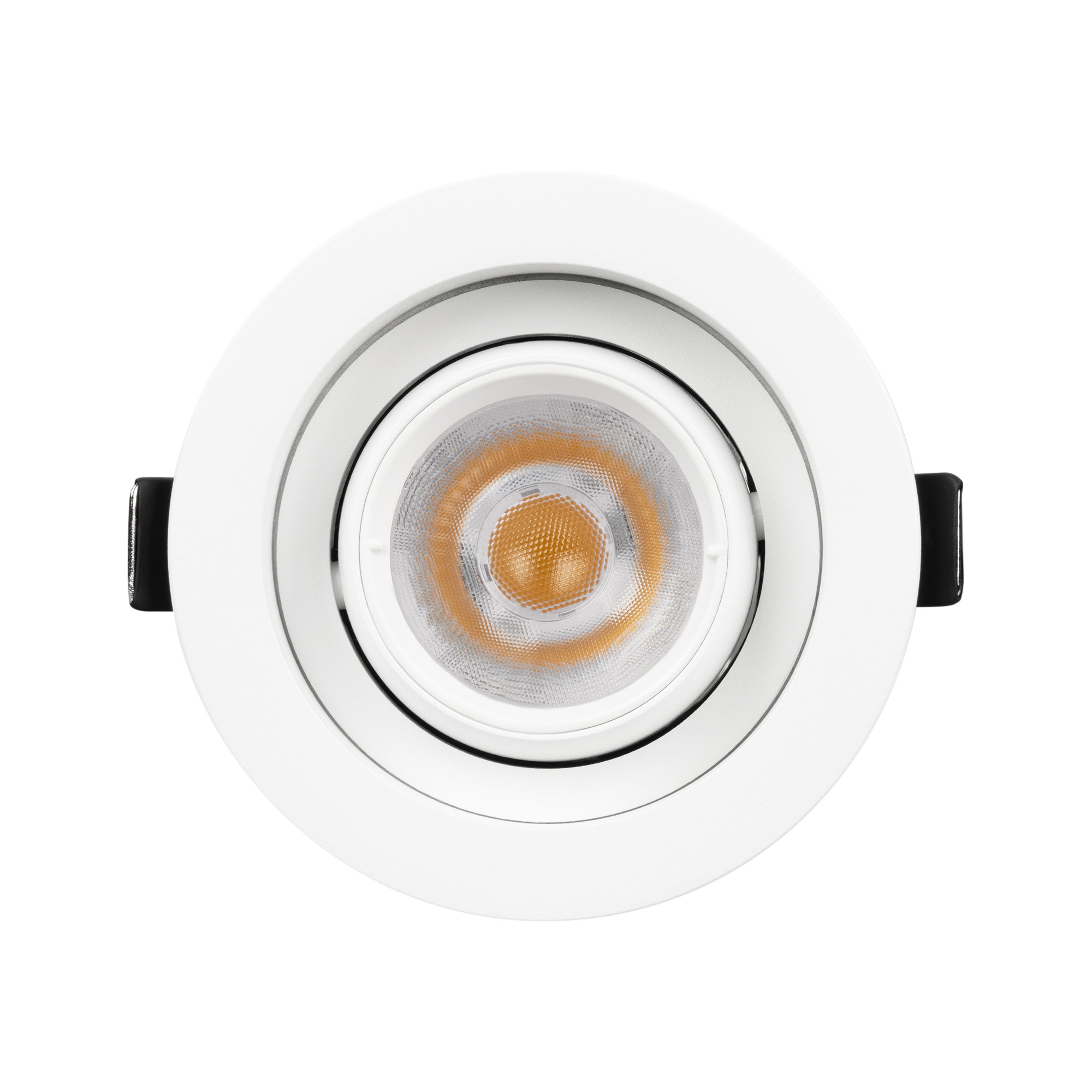 Встраиваемый карданный поворотный светильник с высоким индексом цветопередачи CRI>92 предназначен для создания качественного освещения. За основу поворотного механизма светильника взят принцип кардана – подвижное соединение двух колец, вложенных одно в другое. Световой модуль вращается вокруг своей оси на 360 градусов и отклоняется от горизонта на 30 градусов, что позволяет с лёгкостью регулировать направление пучка света и его концентрацию на определенной зоне. Особая конфигурация корпуса из алюминия оригинально смотрится в интерьере и позволяет эффективно отводить тепло. Светильник с углом рассеивания 40 градусов отлично подходит как для локальной акцентной подсветки витрин, прилавков магазинов, бутиков и стендов выставочных залов, так и для общего освещения. Легко устанавливается с помощью пружин в монтажное отверстие потолка. В комплекте поставляется драйвер, что позволяет безопасно и быстро подключать светильник напрямую к сети переменного тока 230 В.