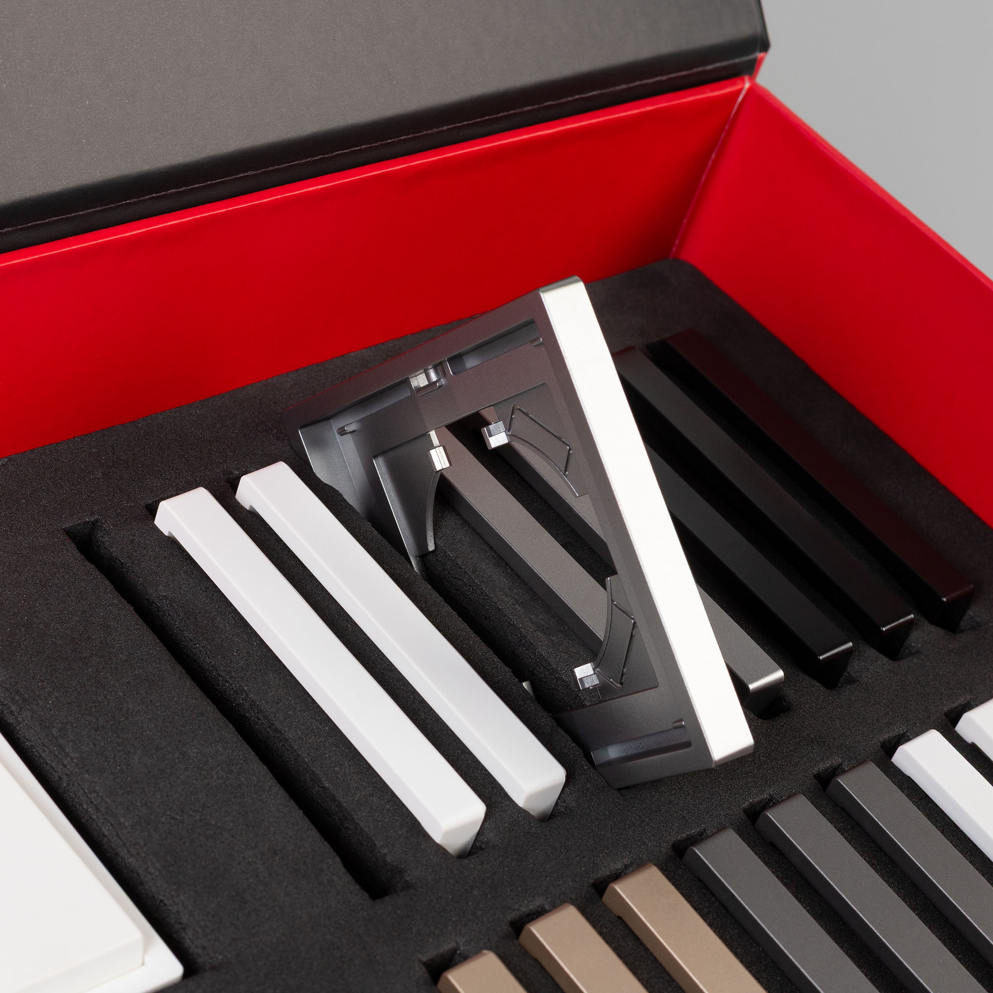 Рамки серии TENDO в цветах белый, черный, золотой и серебристый (серый). Поверхность рамок имеет матовое и Soft-Touch покрытие;