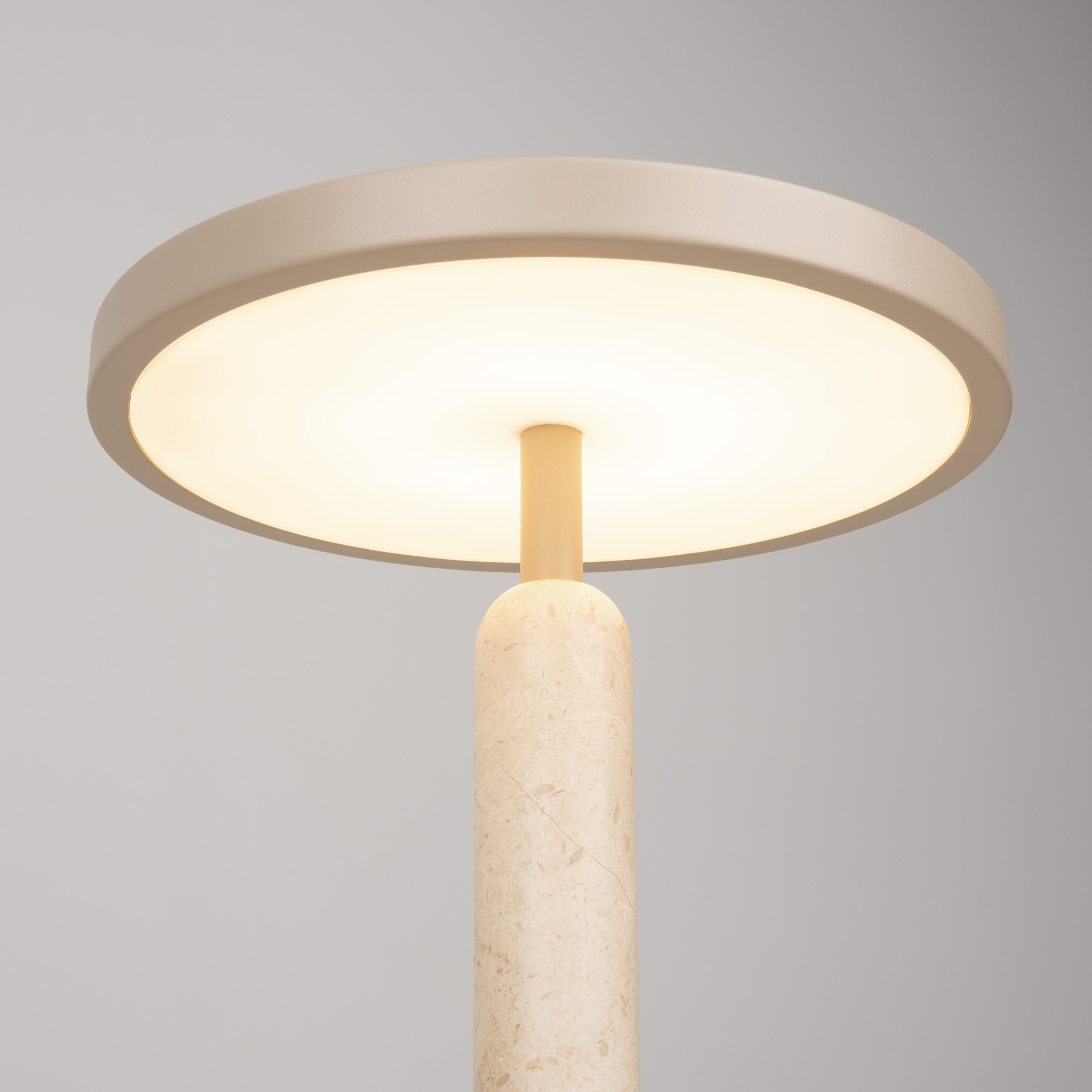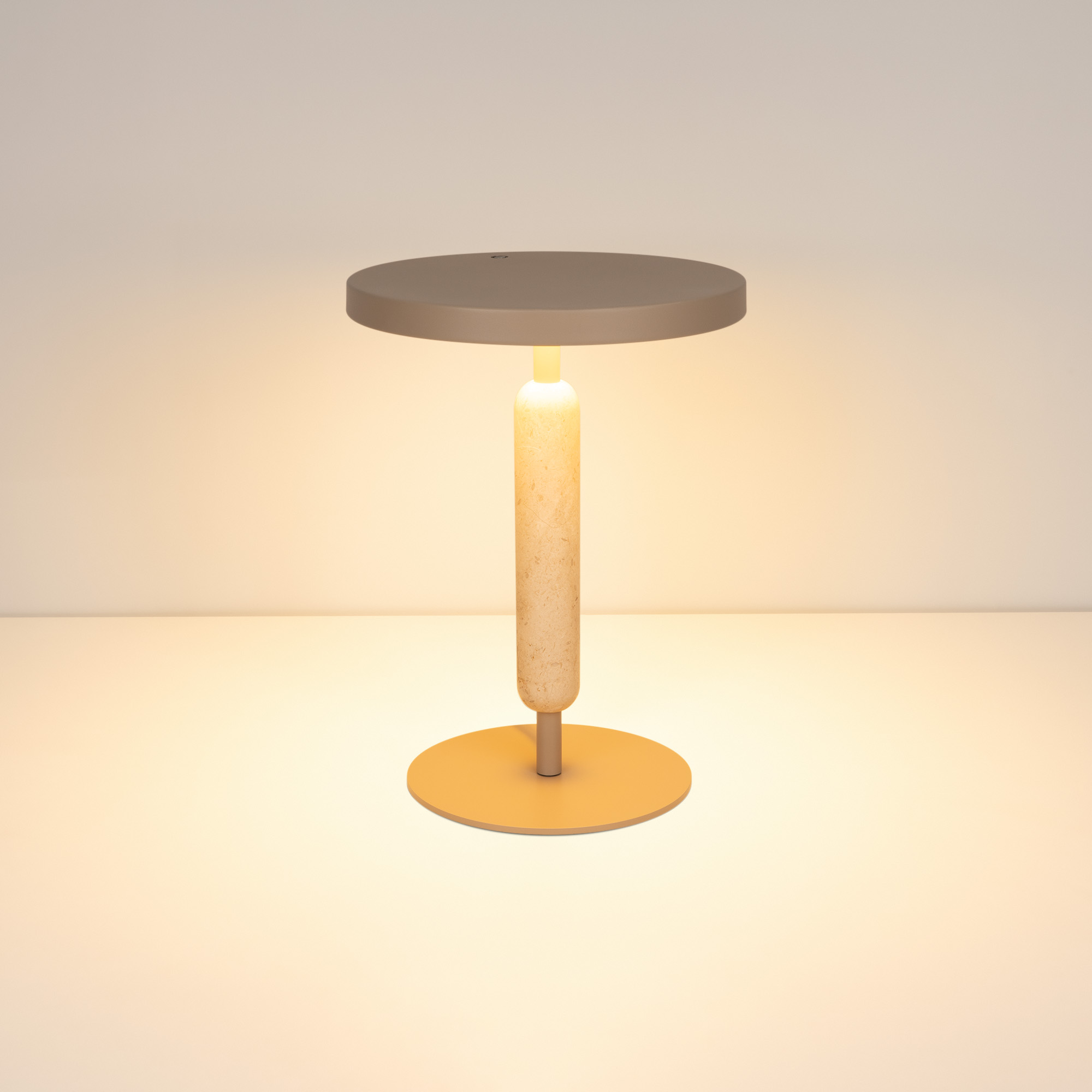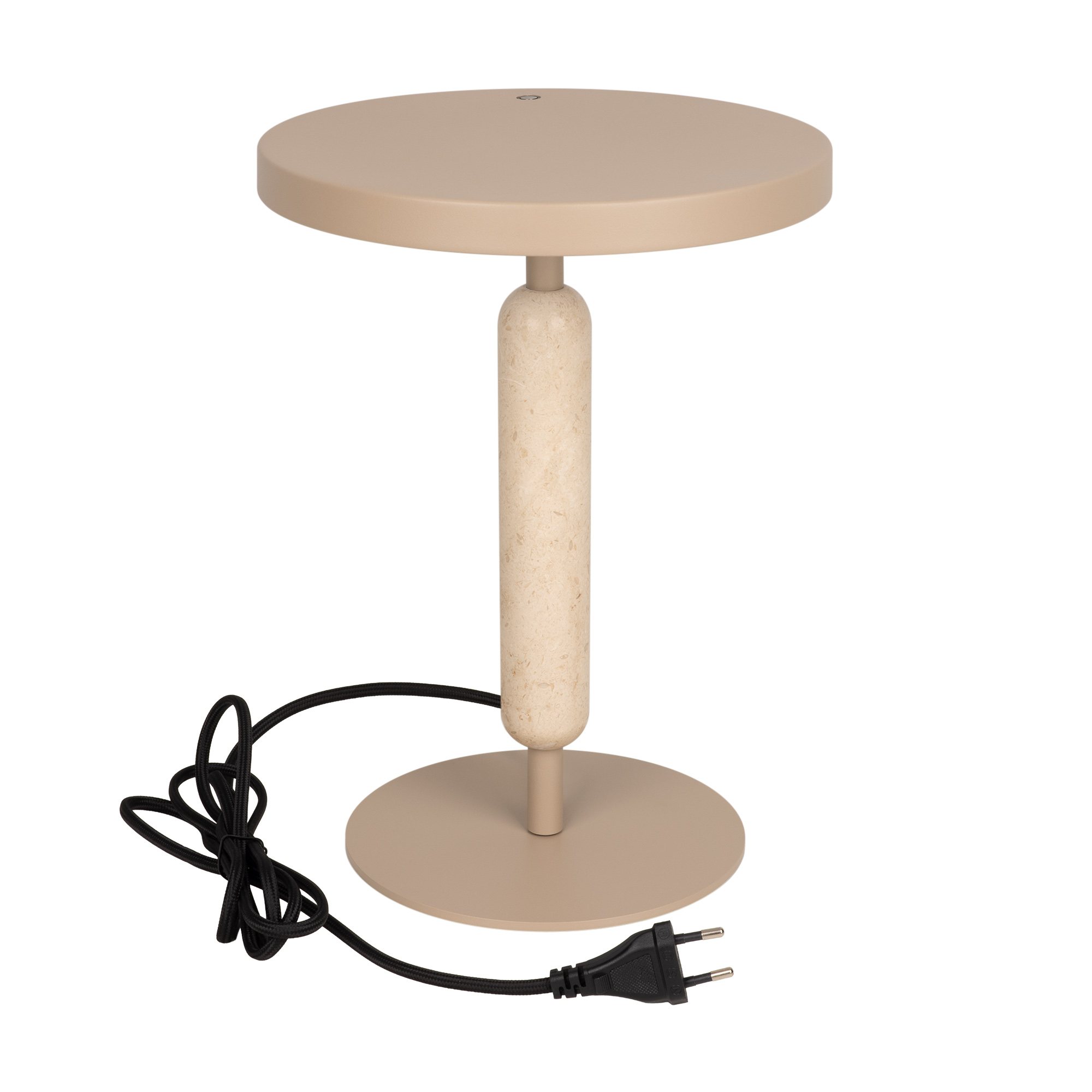 Настольный светильник ALYSS. С изменяемой цветовой температурой 2700/3200/4000К. Цт переключается коротким нажатием на сенсорную кнопку на плафоне, диммирование происходит за счет ее удержания. Мощность 5 Вт, св. поток 195 лм, 39 лм/Вт, CRI>92, угол 110°, напряжение питания 230 В. Бежевый корпус из алюминия, декоративная вставка из мрамора, степень защиты IP20. Размер: диаметр 225 мм, высота 300 мм. Пульсация <1%.