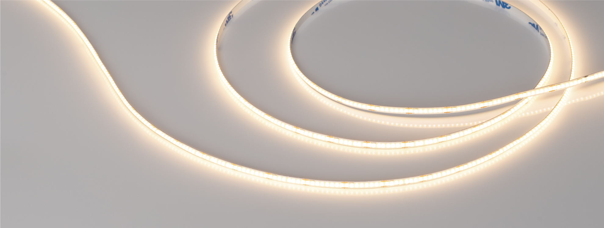Бескорпусные светодиодные ленты линейки COB для создания сплошной равномерной линии света даже без применения рассеивающих экранов. Отличное решение для подсветки интерьеров, а также оформления рекламных конструкций и витрин.