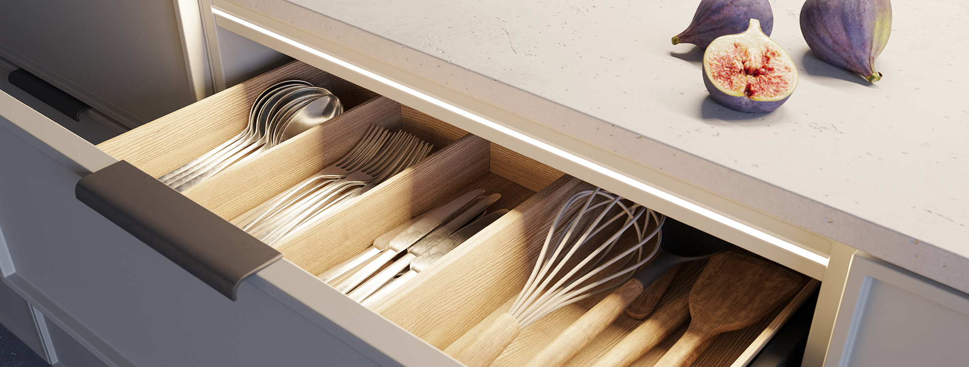 Небольшой шаг резки — всего 20 мм — позволяет создать подсветку необходимой формы и длины.