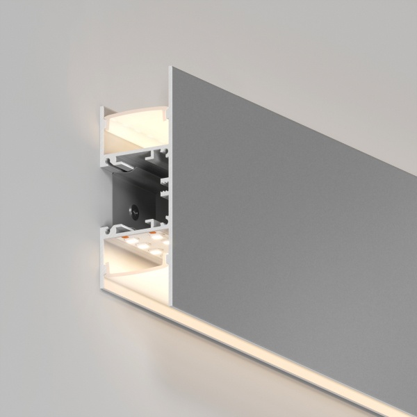 Создавайте настенные светильники и декоративную подсветку стен с помощью новых профилей серии WALL — две модели с эффектом отраженного света со свечением вниз или вверх, а также с двусторонним свечением.
