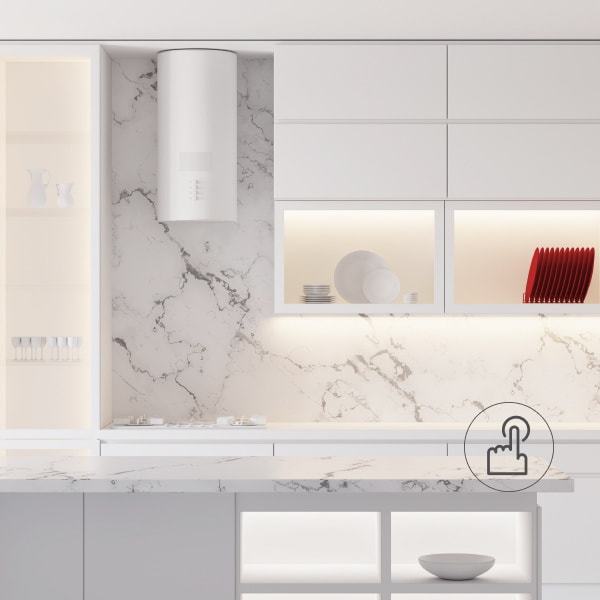 Управляйте мебельной подсветкой одним прикосновением. Новый диммер серии PRIME устанавливается с обратной стороны деревянной столешницы, зеркала или другой стеклянной поверхности толщиной до 4 см. Коротким нажатием вы можете регулировать подачу питания, а продолжительным прикосновением — яркость свечения.