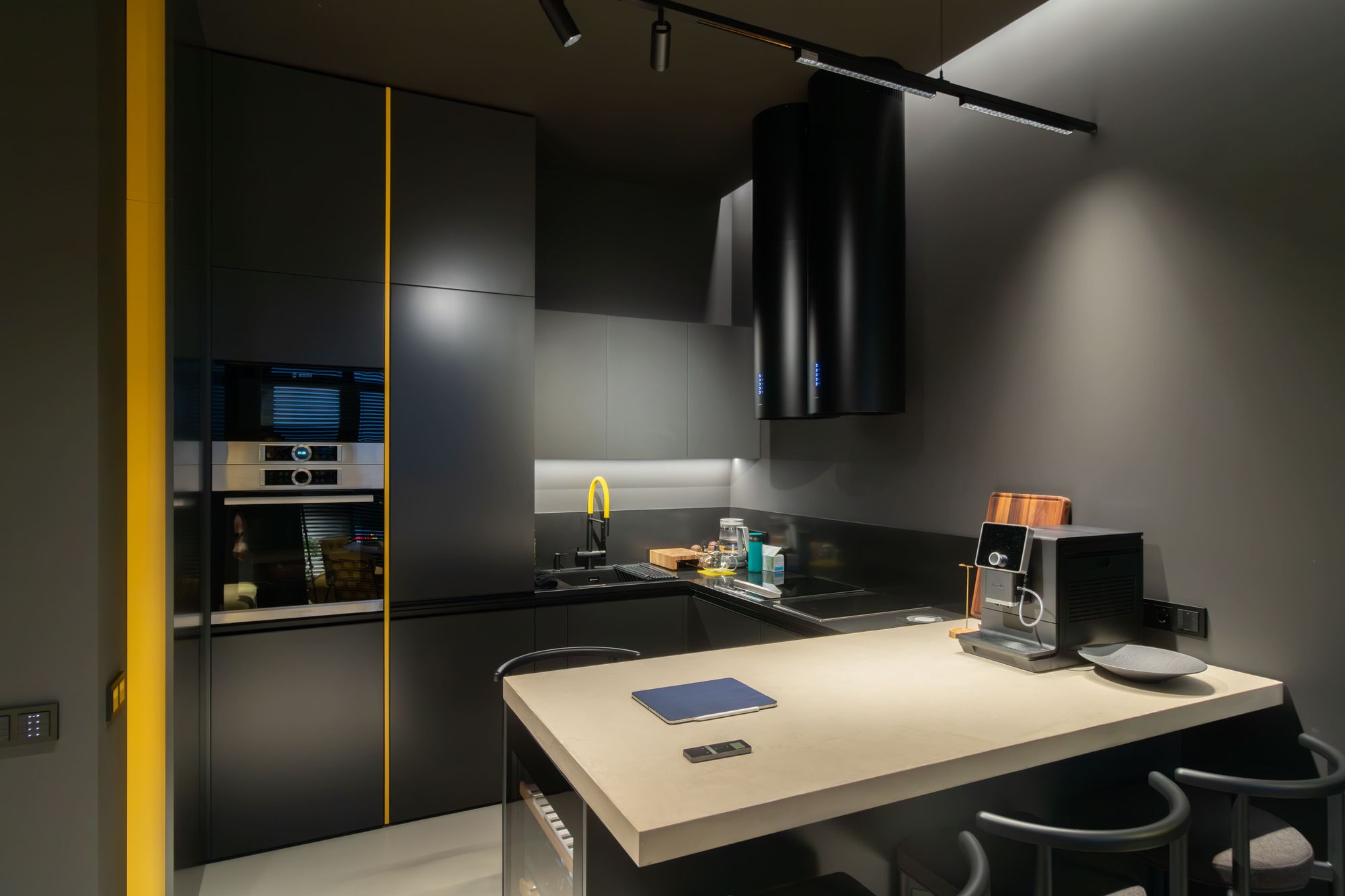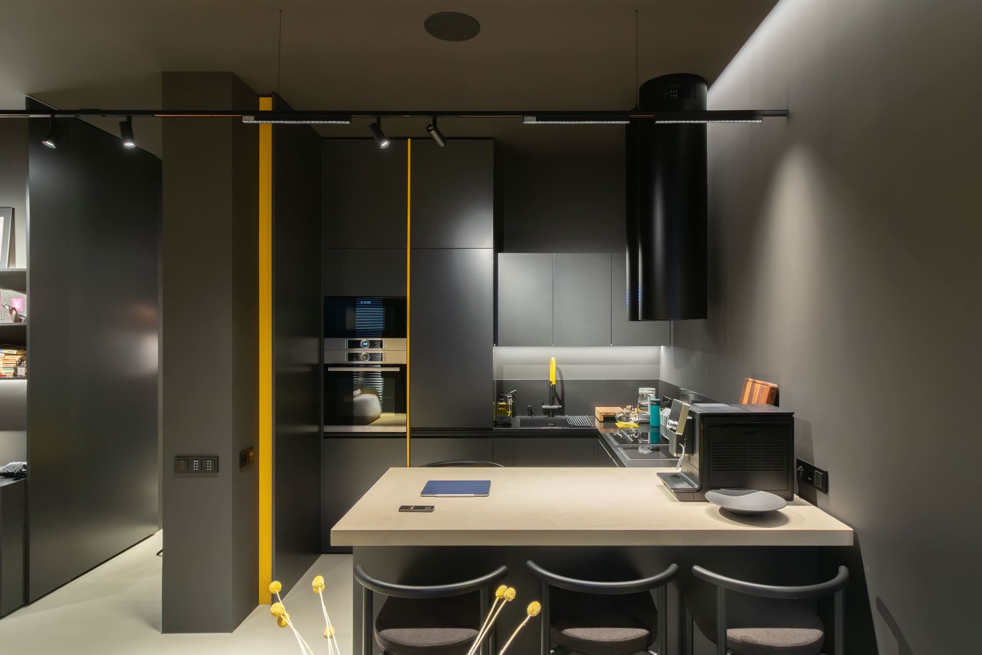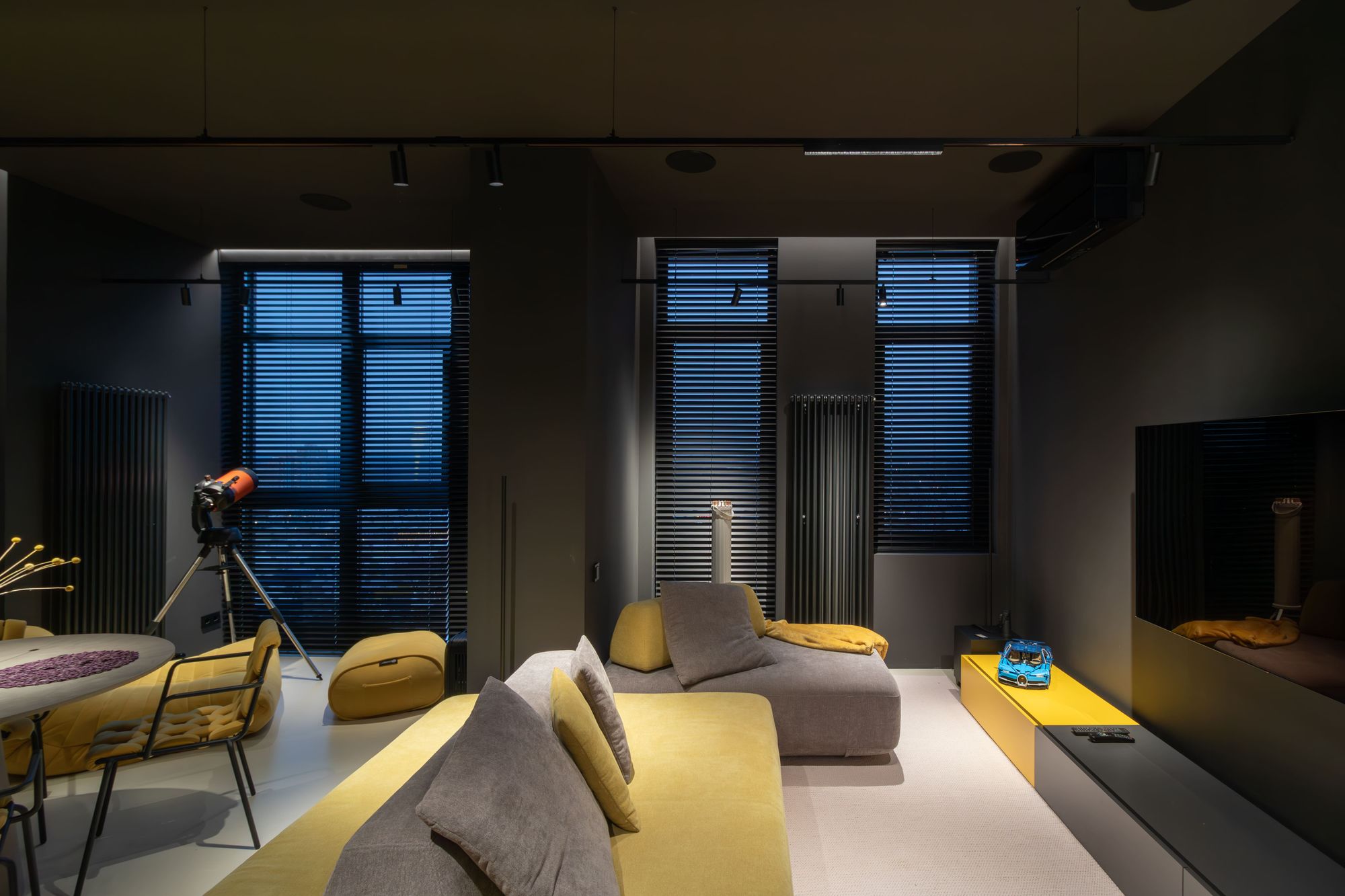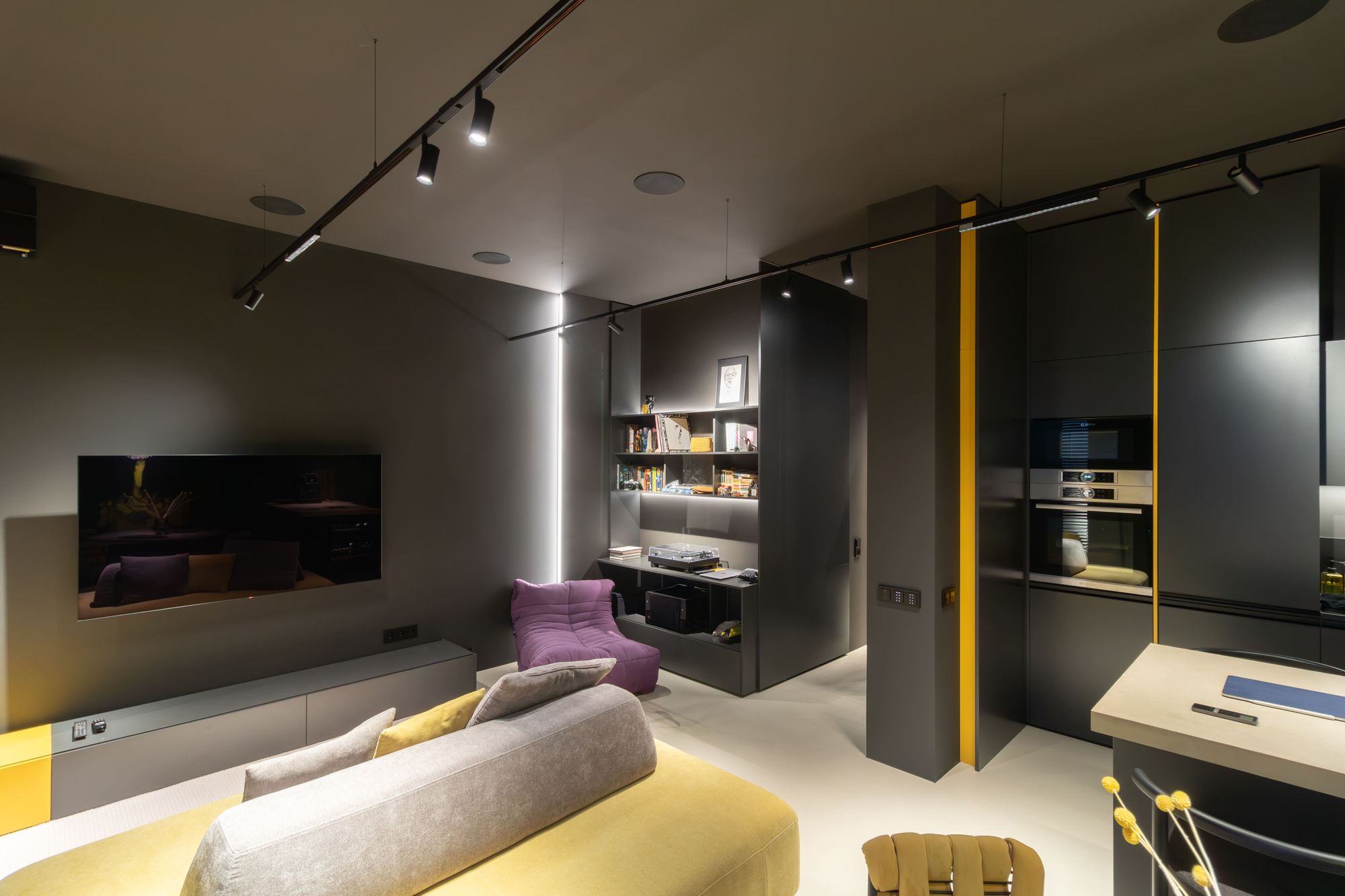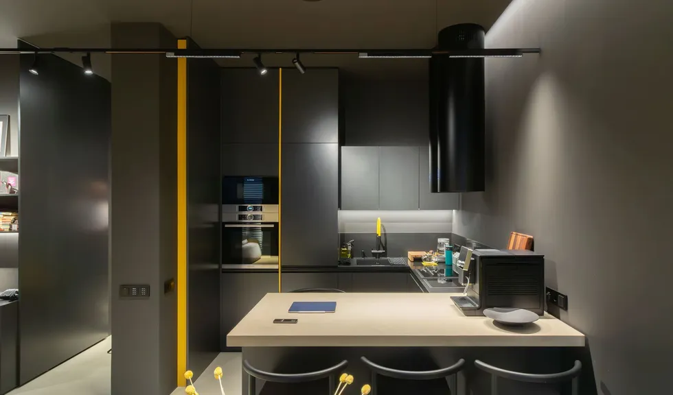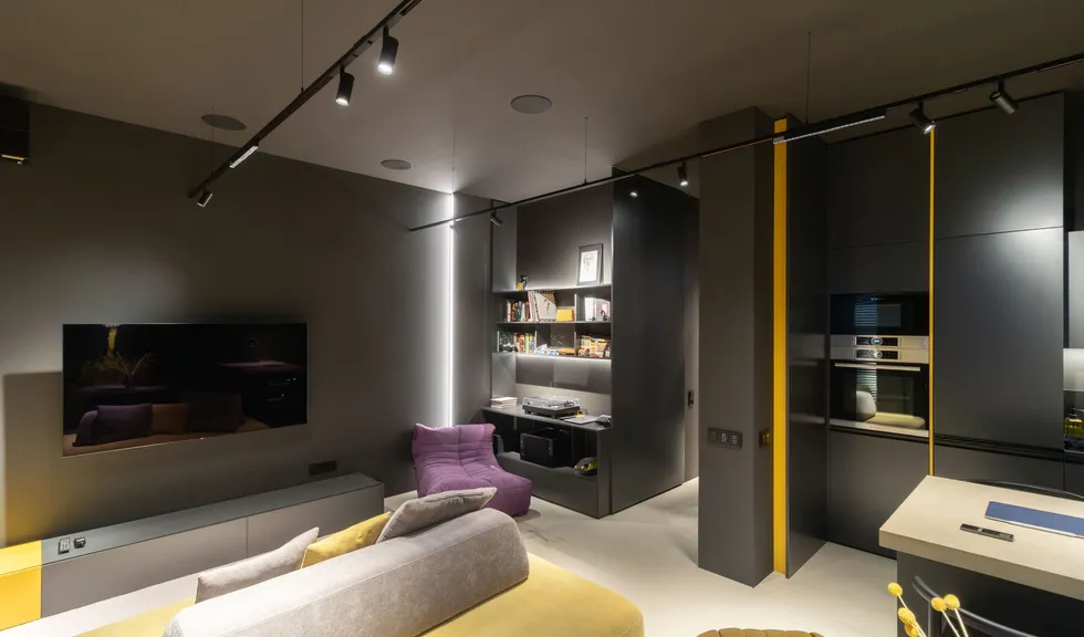 Александр Ремпель, дизайнер и основатель студии Rempel Interiors, доказал это на практике. В своем проекте он добавил в насыщенный черный интерьер несколько желтых акцентов и интеллектуальную подсветку от Arlight с системой управления «Умный дом» (протокол DALI).