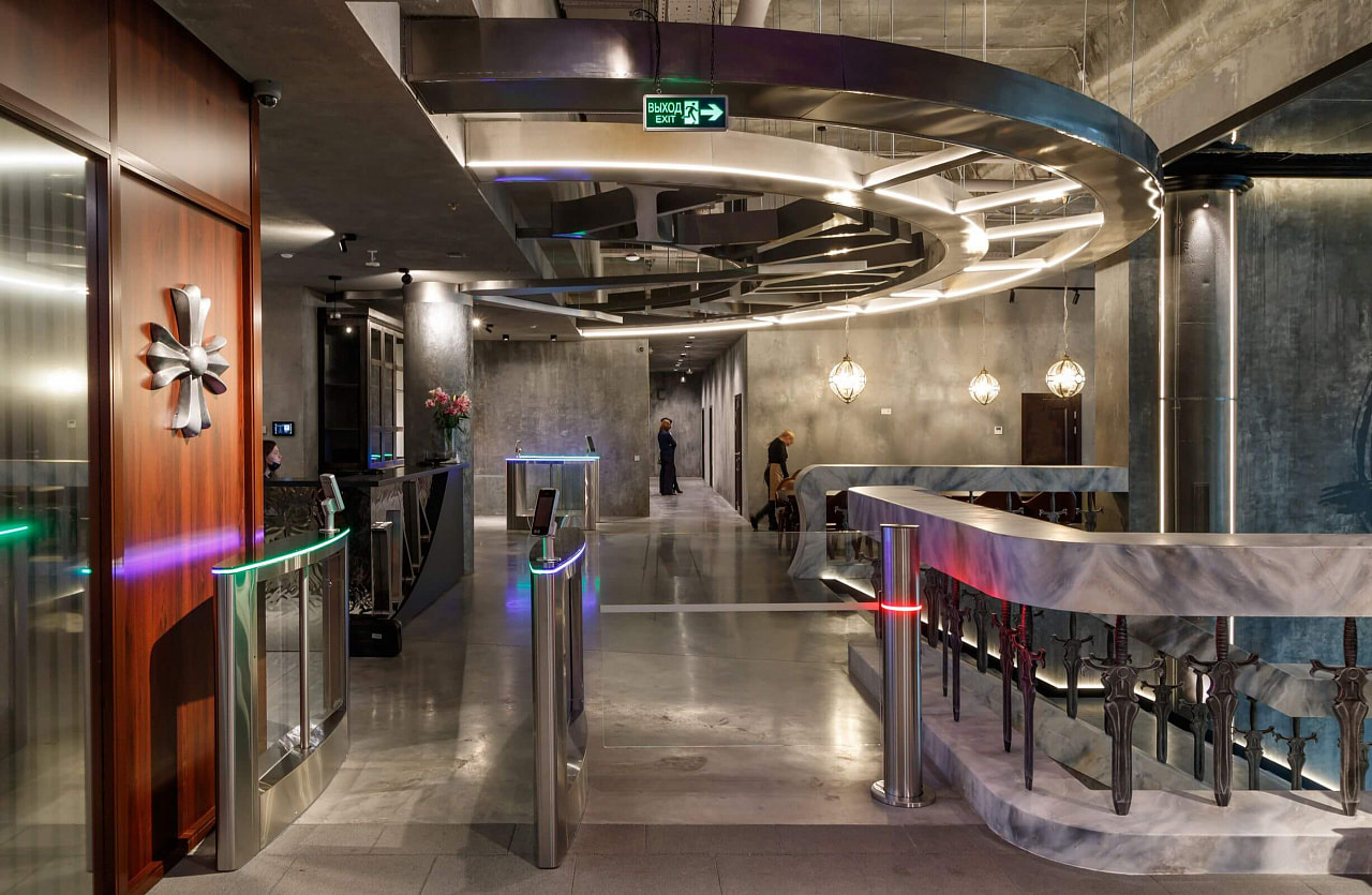 Неповторимость и впечатляющая масштабность, особая атмосфера с мощной энергетикой и дизайнерскими световыми решениями. Разные источники света подобраны с учетом особенностей каждого помещения.
