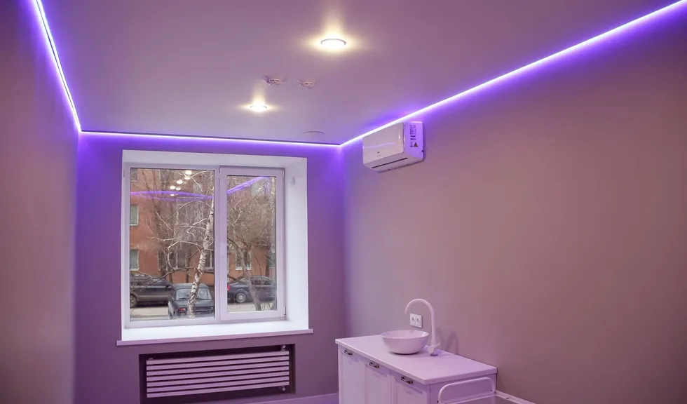 Минималистичный стиль интерьера отражен в освещении: компактные, энергоэффективные светильники обеспечивают комфорт для работы персонала. Основное решение — линейные модели на основе LED-лент и алюминиевых профилей. Такие профильные светильники создают равномерное освещение, сохраняя легкость пространства. В технических зонах и входных группах также соблюден единый стиль.