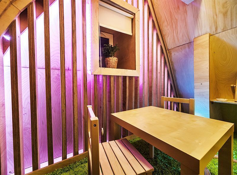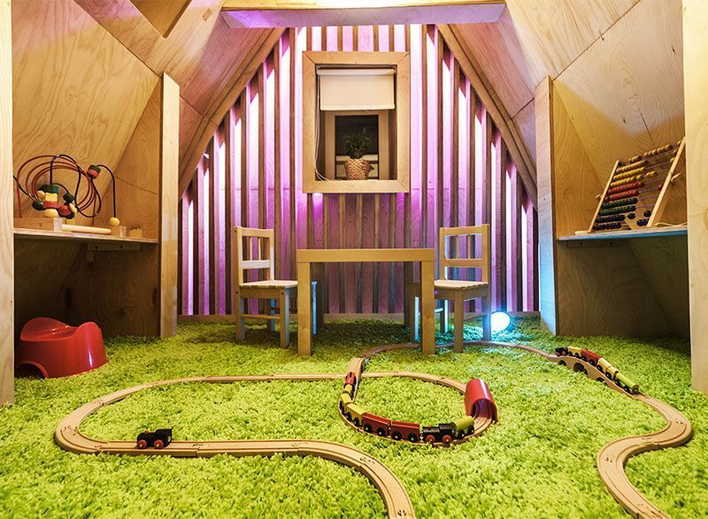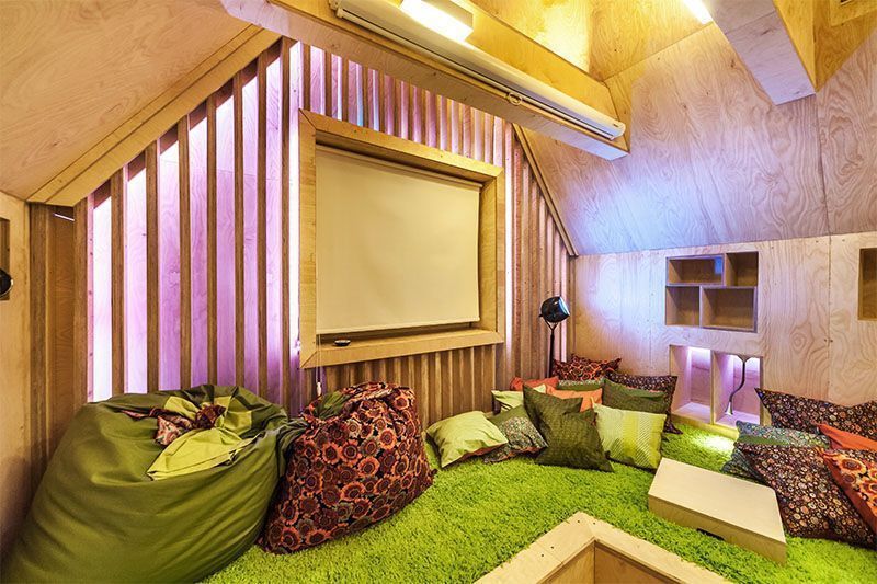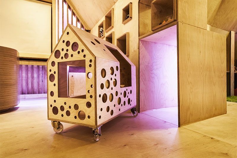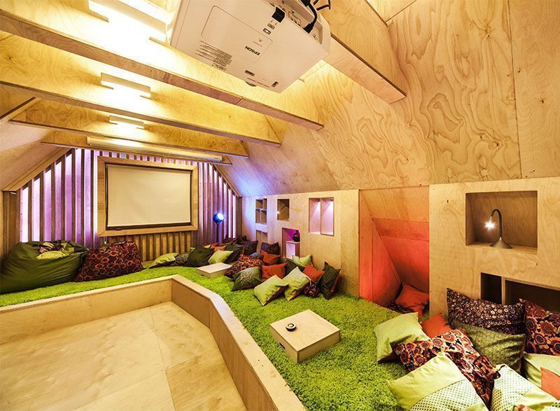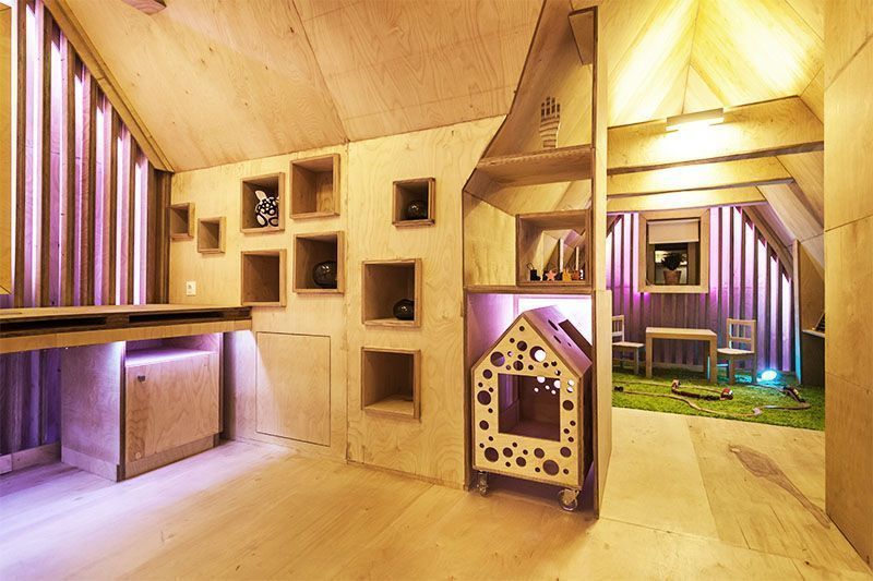 Необычную геометрию пространства подчеркнули игрой света. Здесь представлены как привычные одноцветные лампы, так и многоцветная подсветка на основе светодиодной ленты и энергосберегающих светильников arlight с широкой палитрой оттенков.