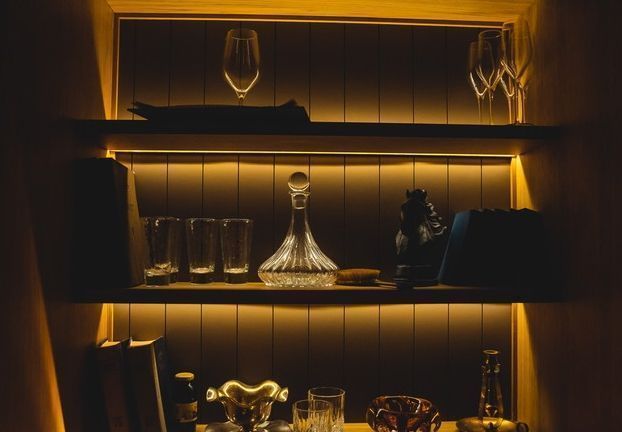 В данном ресторане была установлена светодиодная подсветка полок и ниш, а также подсветка винного шкафа и барной стойки.