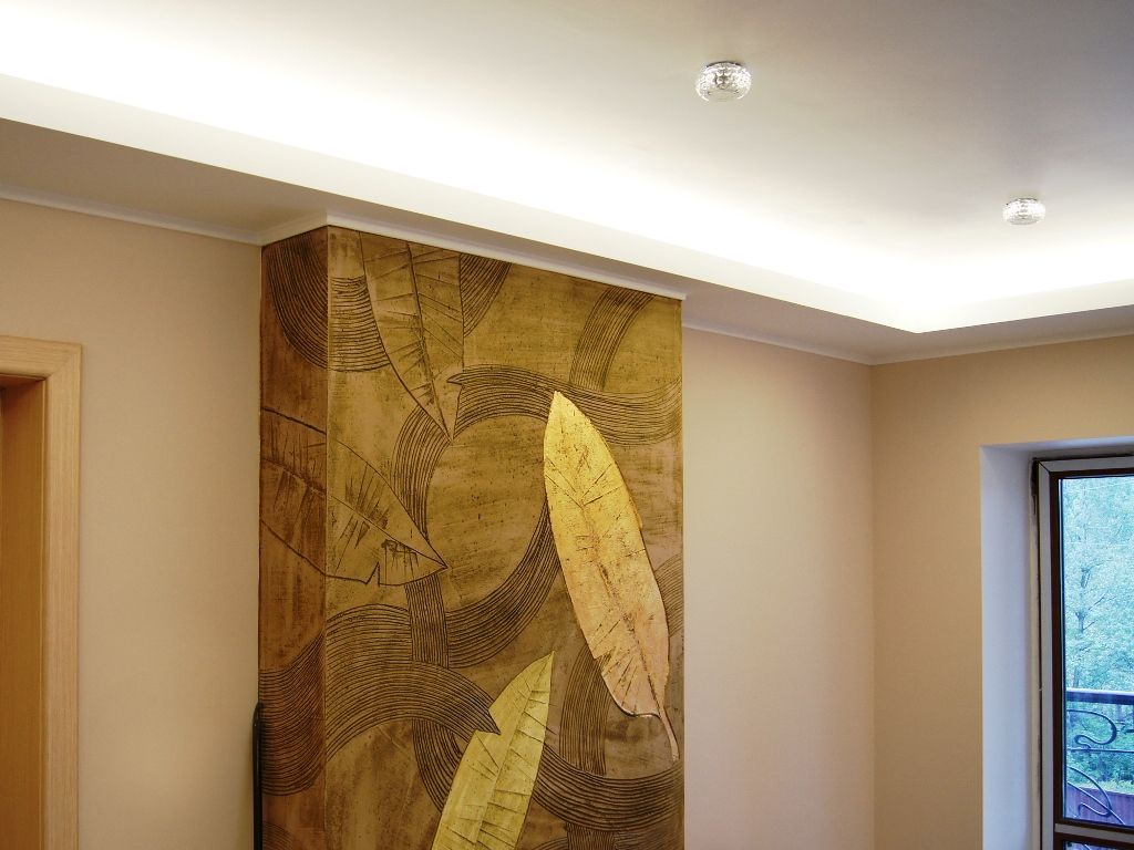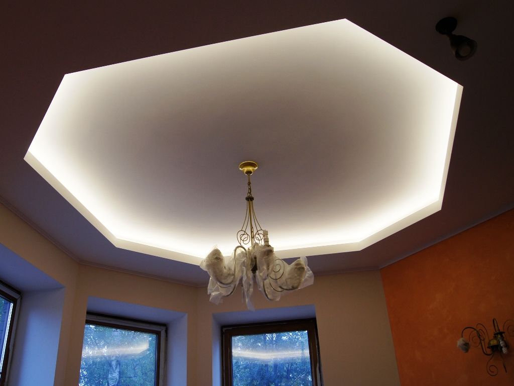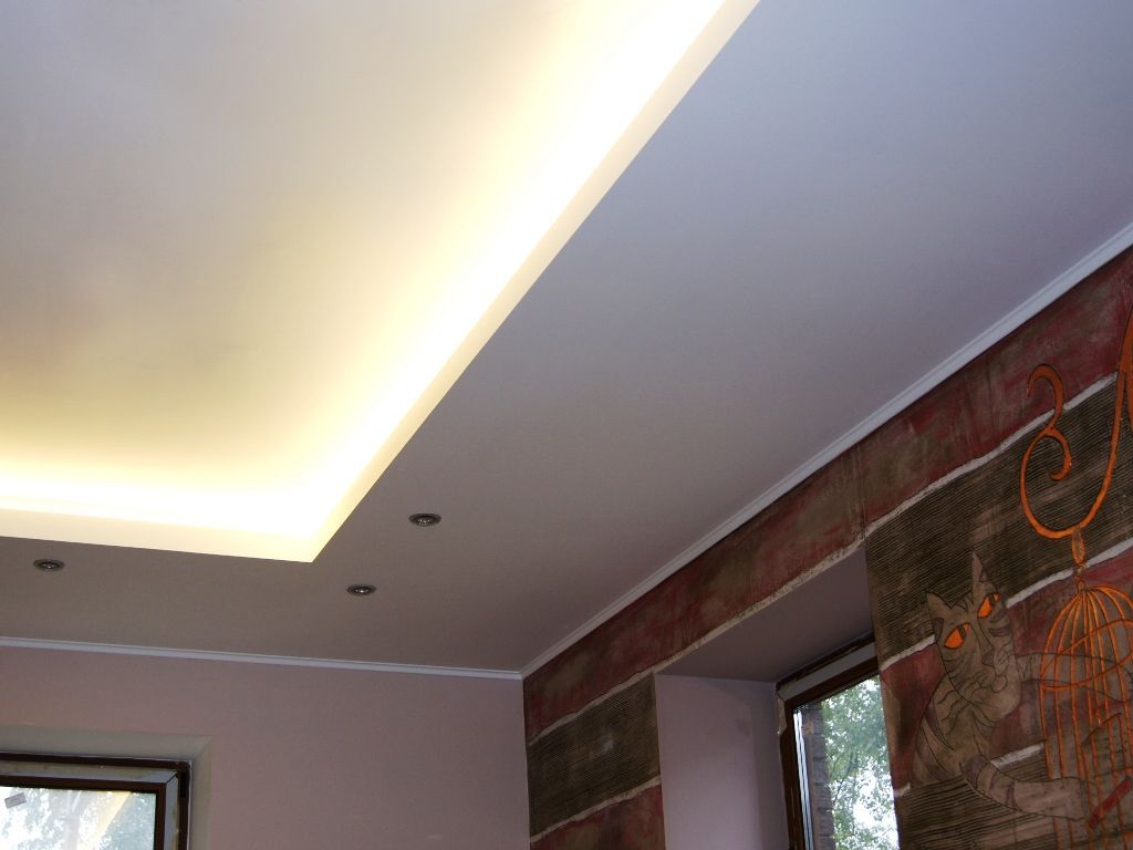 Скрытая светодиодная подсветка, установленная за гипсокартонным потолком, дает мягкий равномерный рассеянный свет. Применение диммеров arlight® в сочетании с яркими двухрядными светодиодными лентами arlight® двойной плотности позволяет использовать светодиодные источники света как для основного освещения, так и для контурной подсветки потолков. Размещение центральной люстры или точечных светильников со светодиодными лампами arlight® создает еще большую гибкость системы освещения.