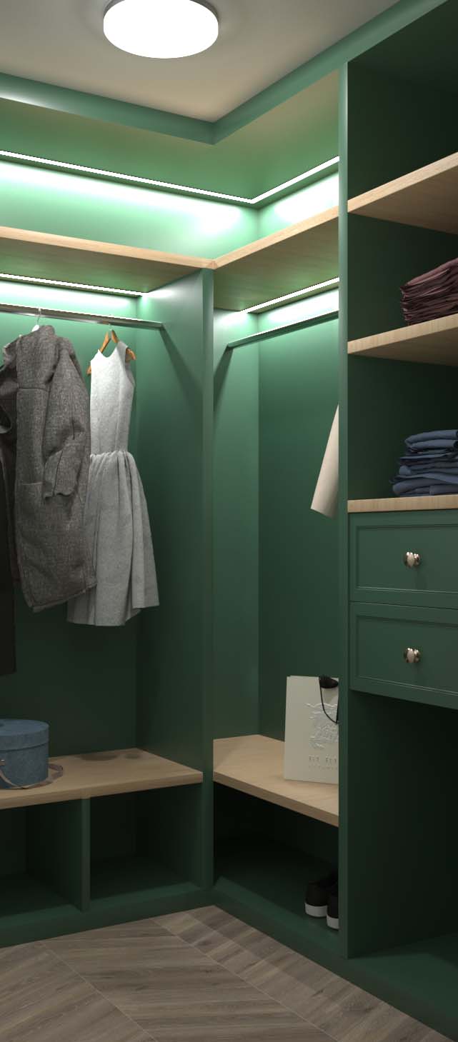 В проекте применялись анодированные профили с экраном и светодиодные ленты дневного белого свечения. Тонкие световые линии гармонично интегрированы в различные помещения. Другая часть основного освещения создана с помощью больших потолочных светильников, которые выразительно контрастируют с простыми линейными светильниками.
